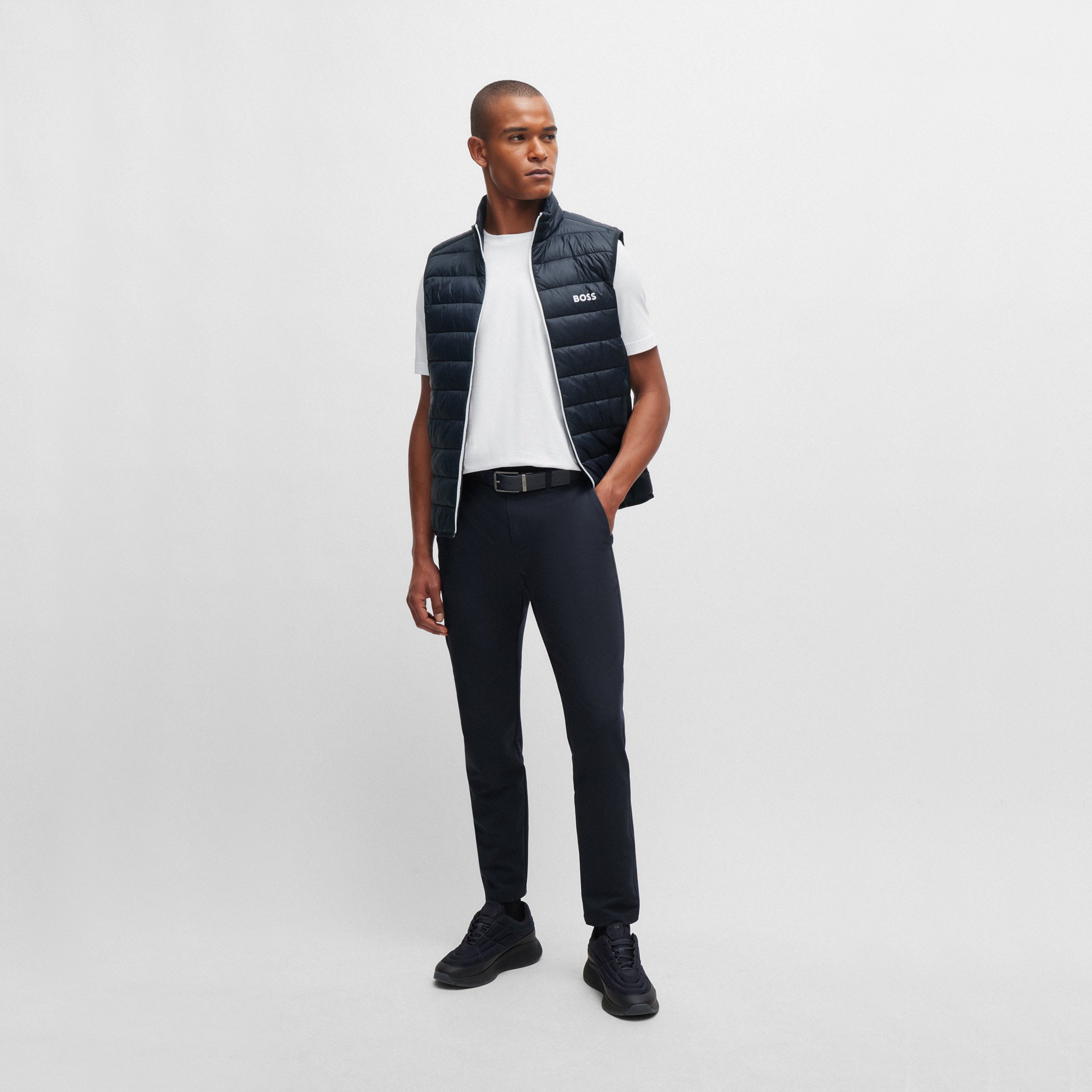 Cut to a regular fit, this modern gilet by BOSS Menswear is created in and filled with lightweight materials for an unrestrictive feel. For the best fit, we advise ordering one size larger.
