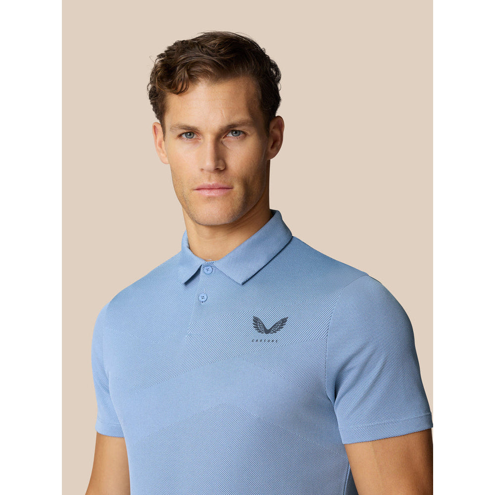 Castore Pinnacle Engineered Knit Polo Golf Shirt - Sky Blue/Midnight Navy