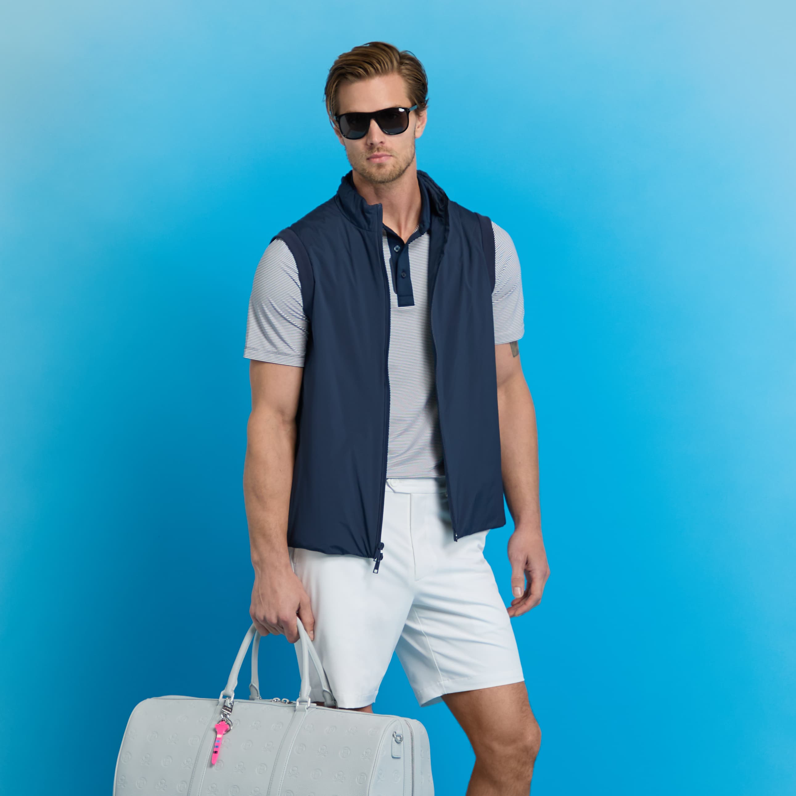 COVERED IN OUR FEEDER STRIPE PRINT, THIS TECH JERSEY POLO IS THE ULTIMATE EVERYDAY ESSENTIAL FOR DAYS AT THE CLUBHOUSE, THE COURSE, AND IN BETWEEN. MADE OF SMOOTH TECH STRETCH JERSEY WITH MOISTURE WICKING AND ODOR INHIBITING PROPERTIES, PLUS UNBEATABLE 4-WAY STRETCH, IT'S A MUST-HAVE FOR ANY GOLFER'S CLOSET.