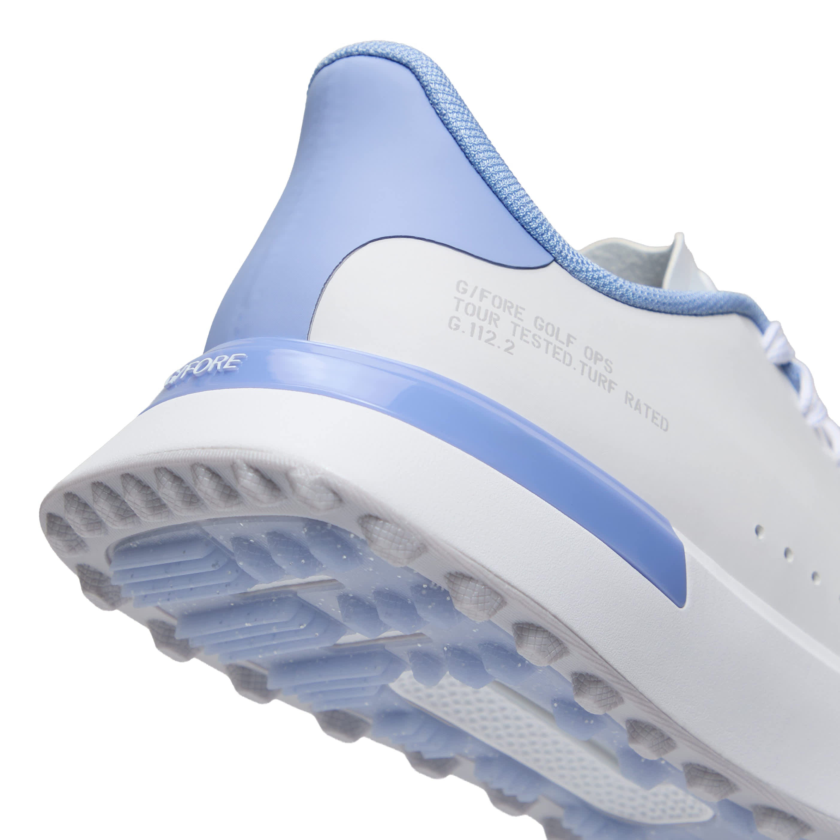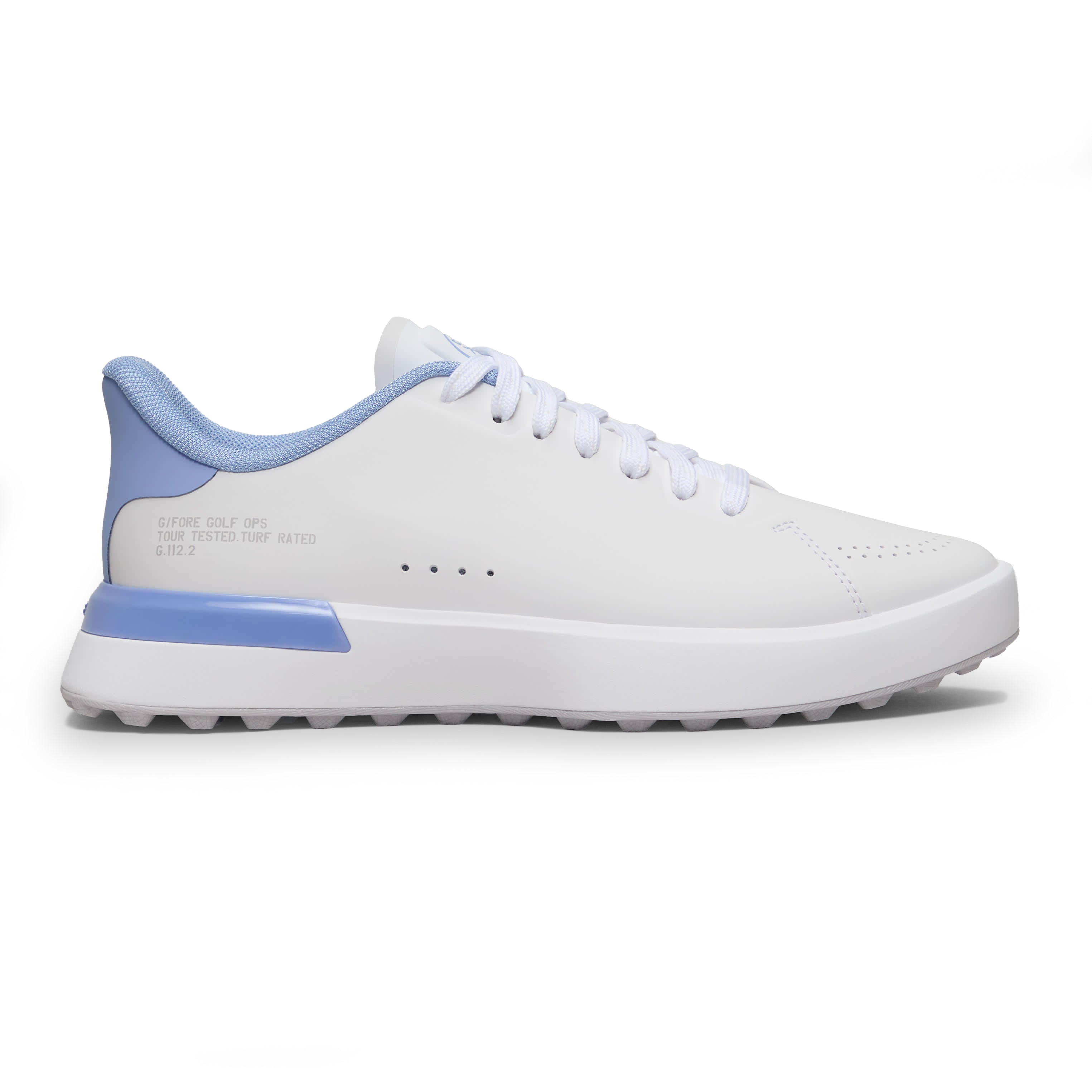 The new g.112 golf shoe has an updated anti-slip grip outsole with the same sleek silhouette and low-drop design that enhances your connection to the ground. Equipped for optimal grip with heel-to-toe turf traction, it's the go-to shoe for all day play with a comfortable eva midsole and mesh lining. Wear with one of our straight leg trousers and classic polos for a look that works on the course or at the clubhouse. This one has a fun pop of colour with the love g lips on the kiltie.