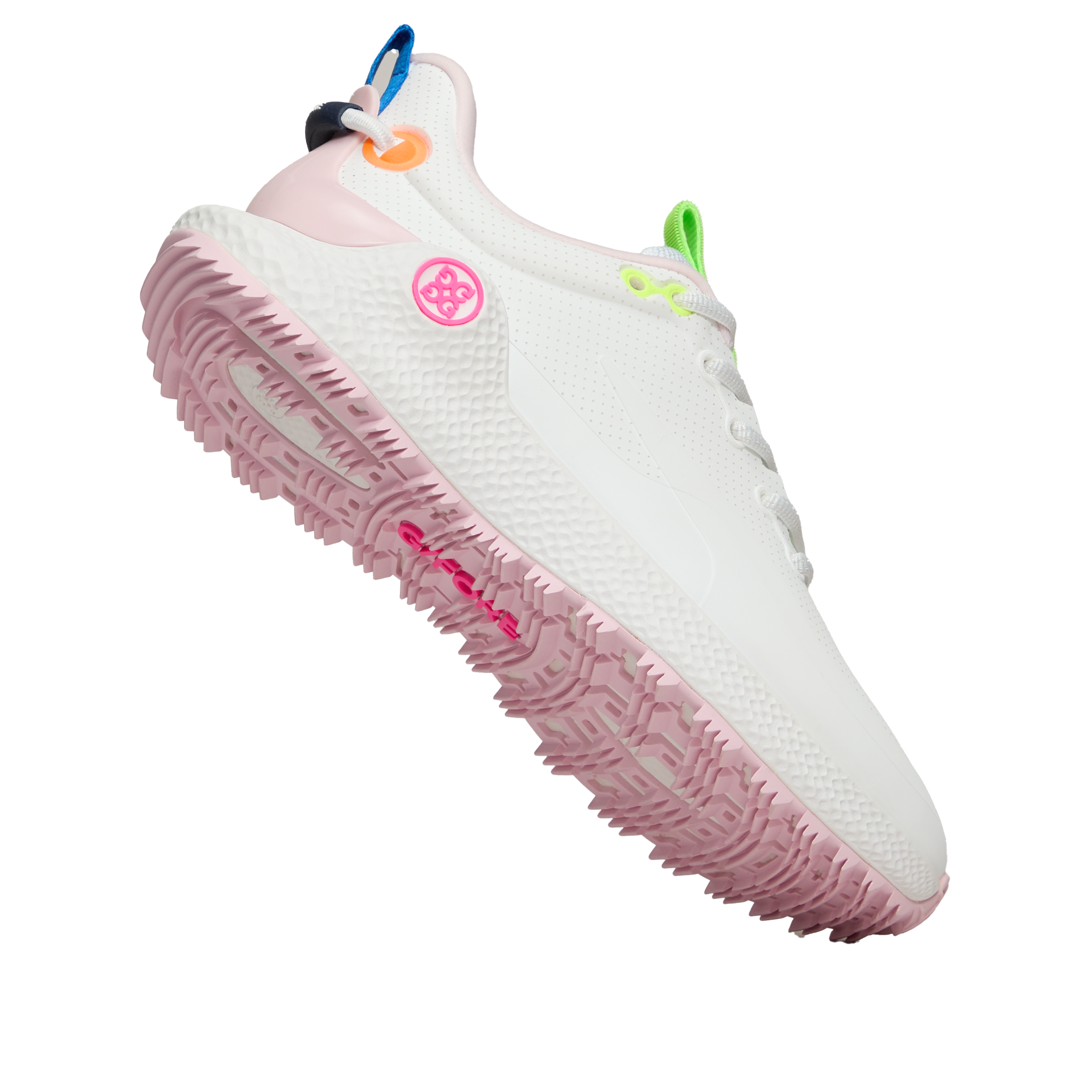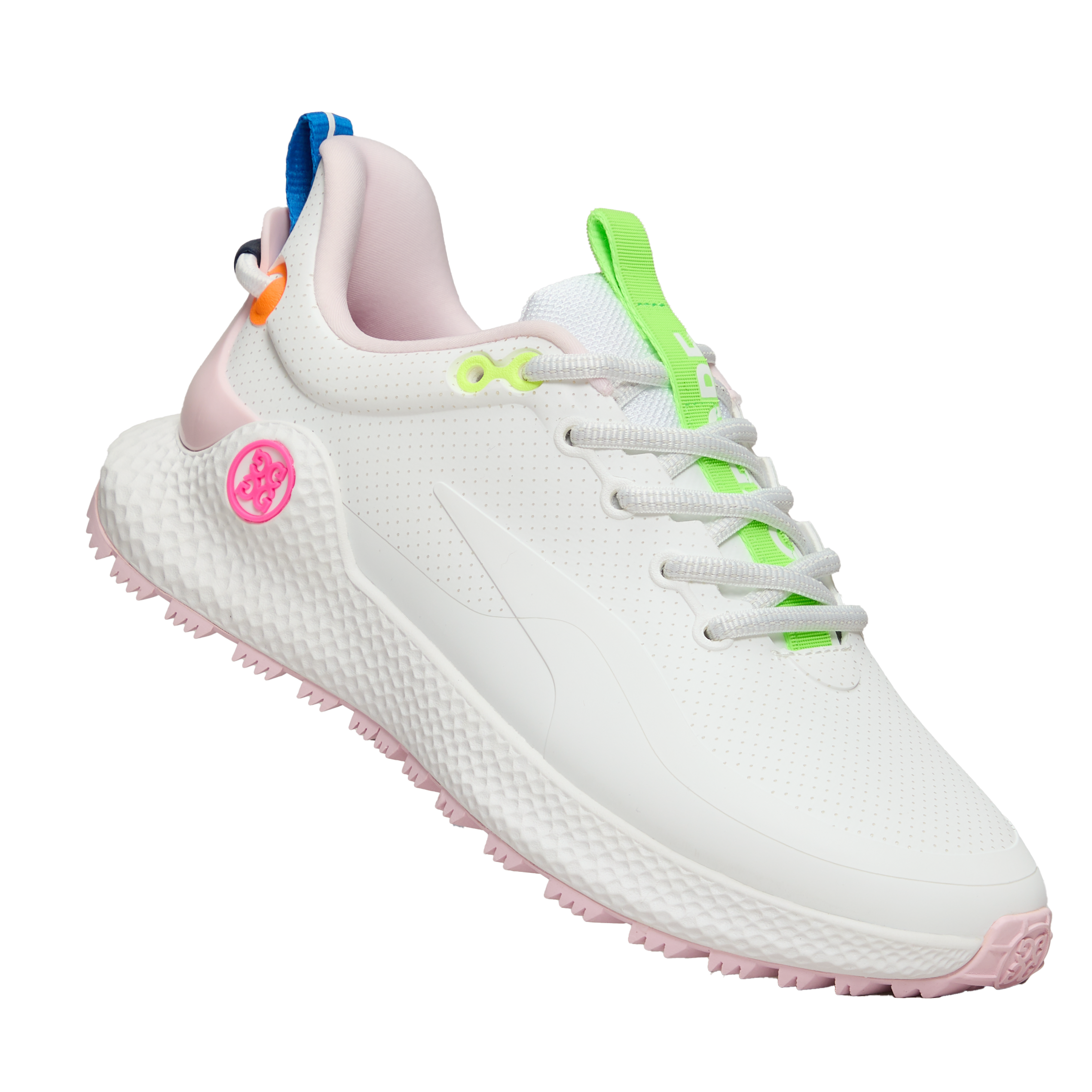 THE MG4+ O2 GOLF SHOE — PRONOUNCED OH · TOO — TAKES THE ATHLETIC DESIGN AND COMFORT OF THE BEST-SELLING MG4+ AND AMPLIFIES THEM. THIS VERSION IS OUR LATEST ITERATION DESIGNED TO BOLSTER PERFORMANCE FOR THOSE WHO PREFER A SPIKELESS OPTION. THE SAWTOOTH TRACTION PATTERN OFFERS EXCELLENT GRIP TO PROMOTE THAT PERFECT SWING, WHILE THE EXTERNAL HEEL COUNTER PROVIDES EXTRA STABILITY — PLUS, THESE PERFORATED ONES ADD A BIT OF EXTRA BREATHABILITY. BREATHE NEW LIFE INTO YOUR GAME WITH THE O2.