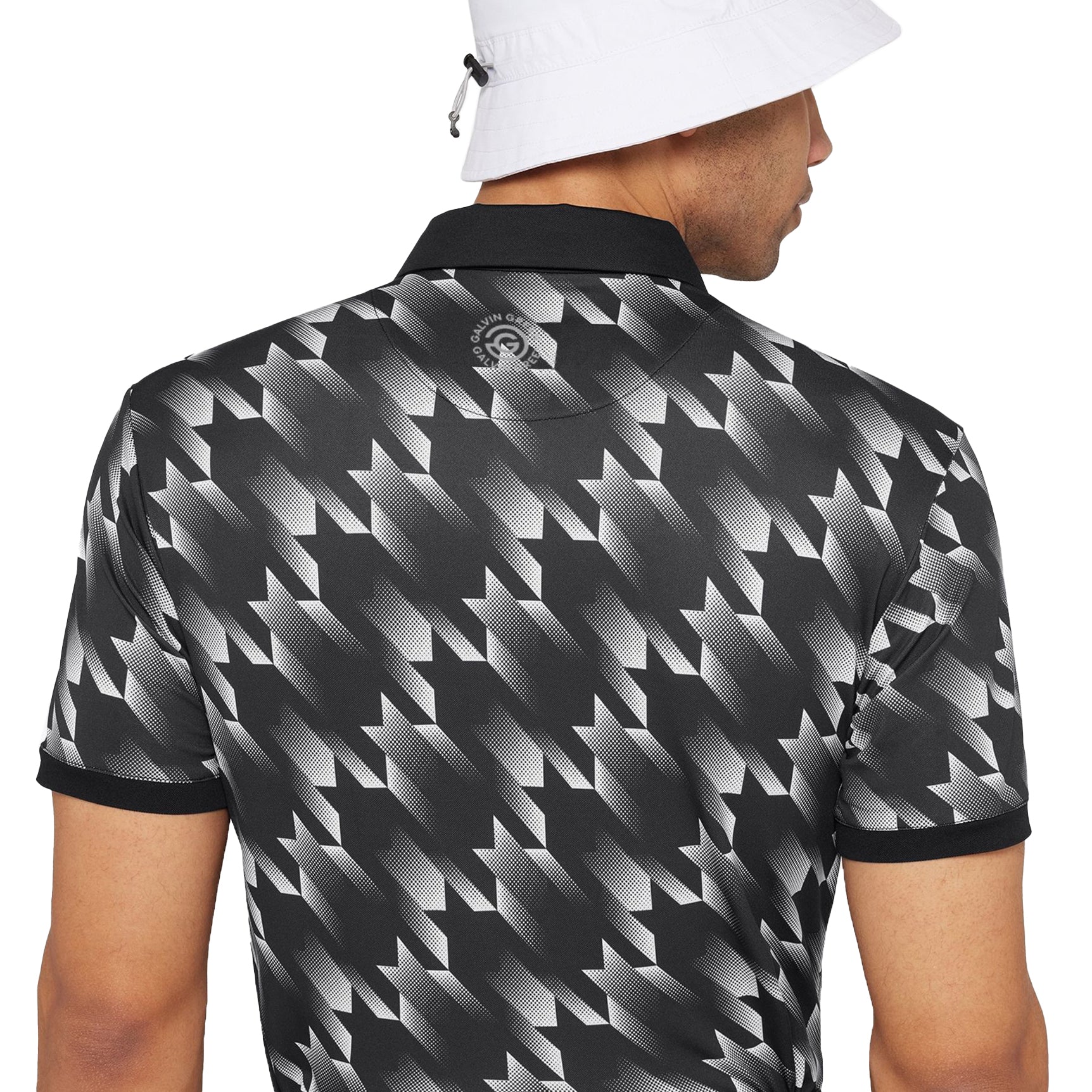 Designed for golfers who want to stand out, the Galvin Green Miles Golf Polo makes a bold statement with its oversized graphic houndstooth print. Crafted from VENTIL8™ PLUS fabric, it offers extreme breathability, rapid quick-dry performance, and UV 20+ protection to keep you cool, dry, and comfortable in sunny conditions. The stretch material ensures unrestricted movement, while the tailored collar and sleeve end cuffs deliver a refined, athletic look.