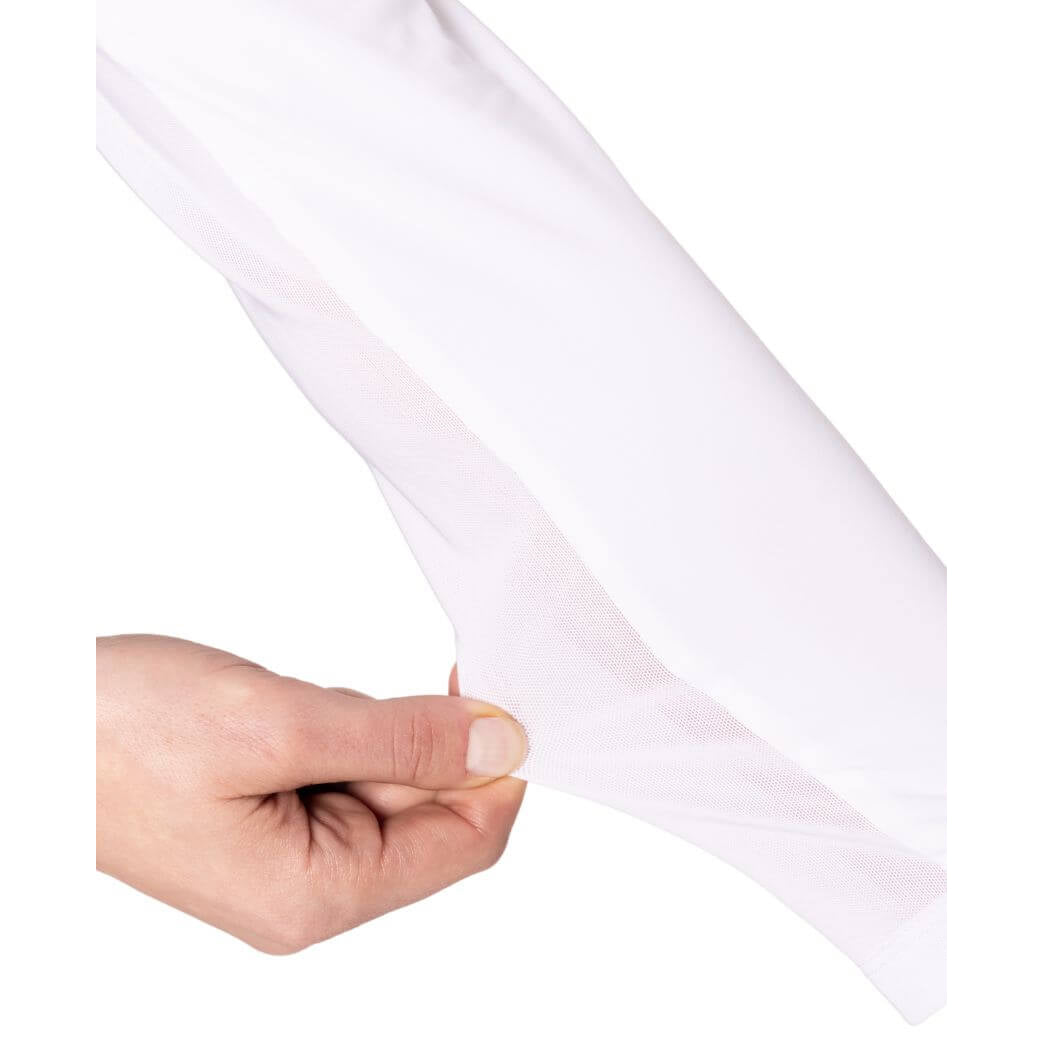 The Golftini Women’s White Long Sleeve Sport Polo combines classic style with performance-driven functionality. Crafted from lightweight, moisture-wicking fabric, this polo keeps you cool and comfortable throughout your round. Feminine princess seams and breathable undersleeve mesh panels provide a flattering fit and enhanced ventilation, while UPF 30+ sun protection and wrinkle-free performance make it ideal for sunny days on the course.