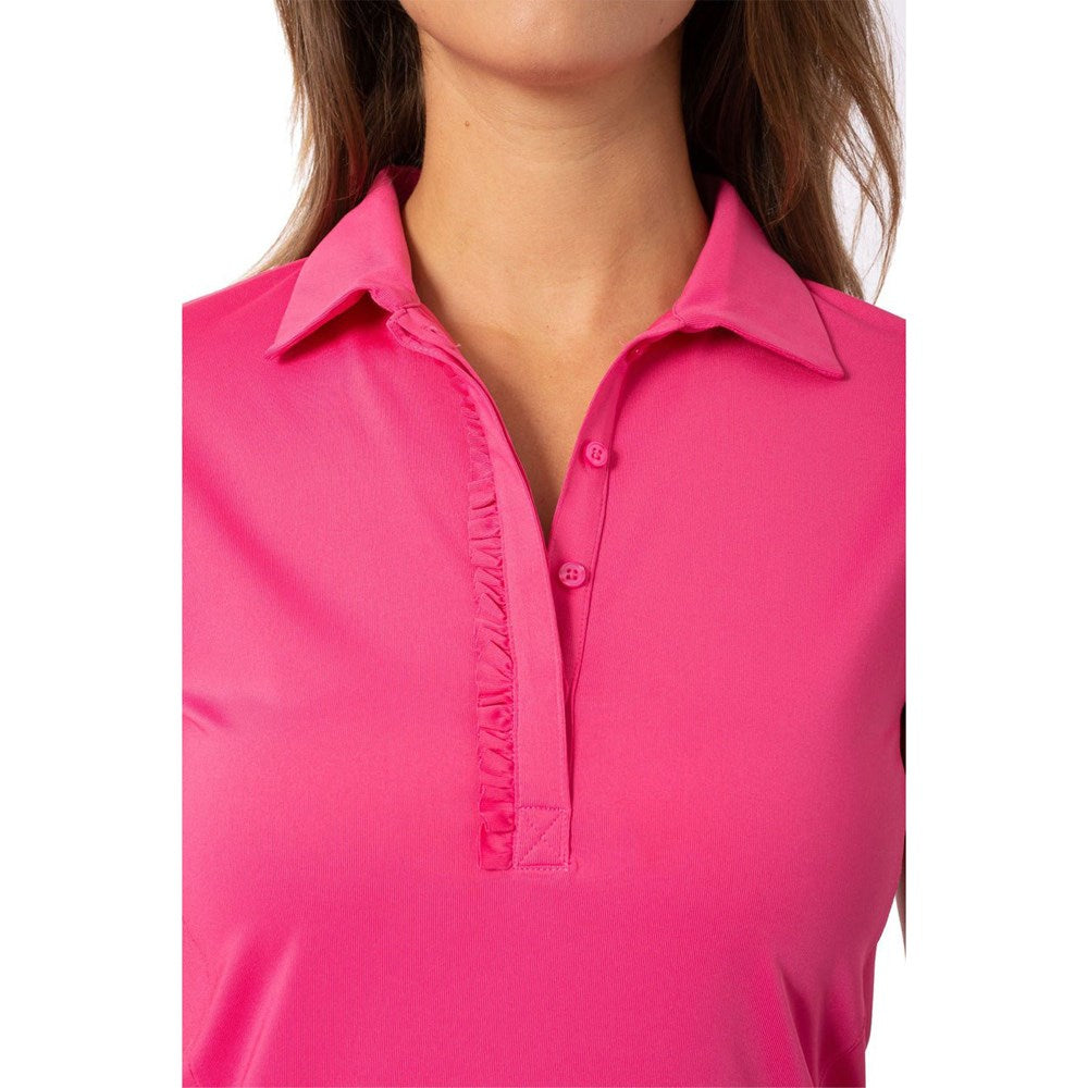Golftini Women's Short Sleeve Ruffle Golf Polo Shirt - Hot Pink