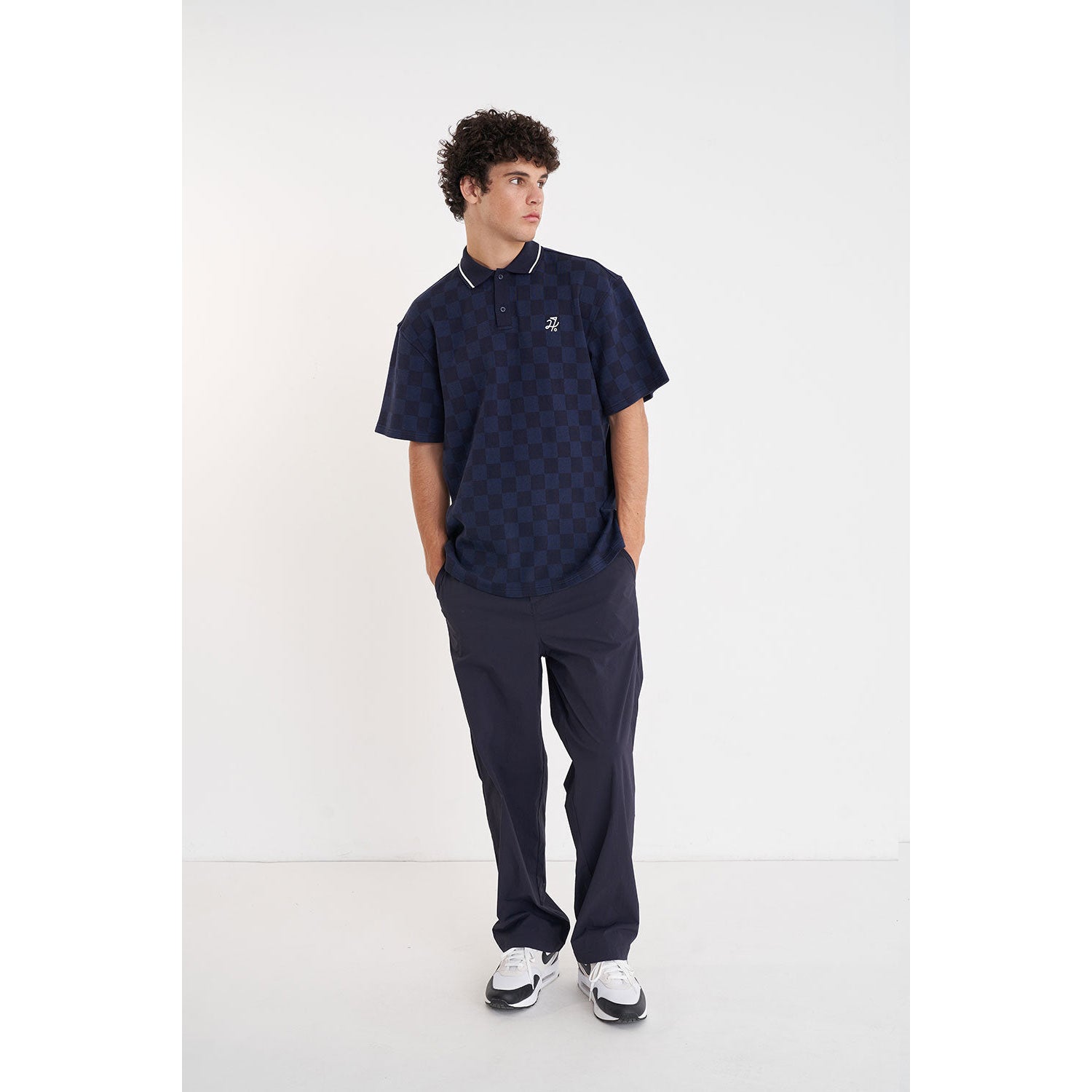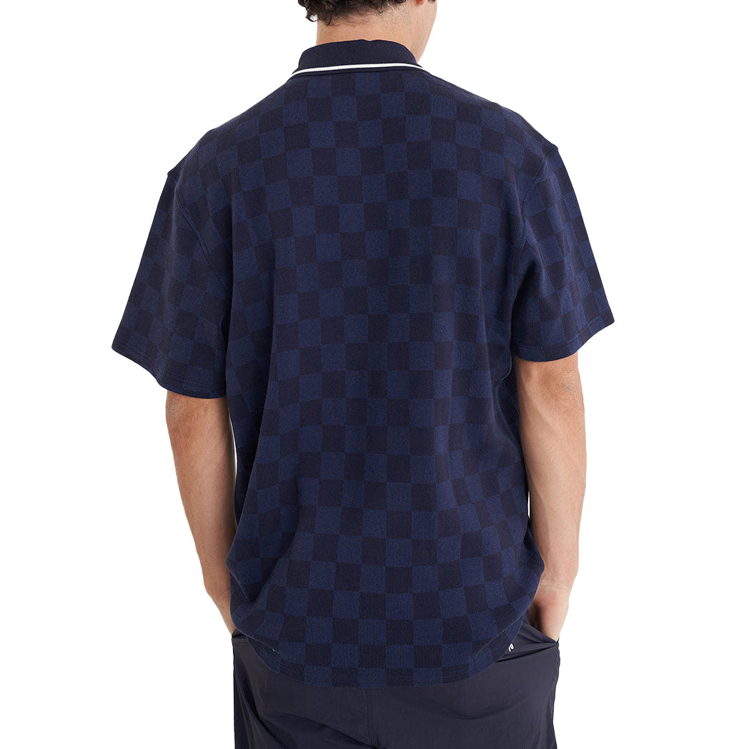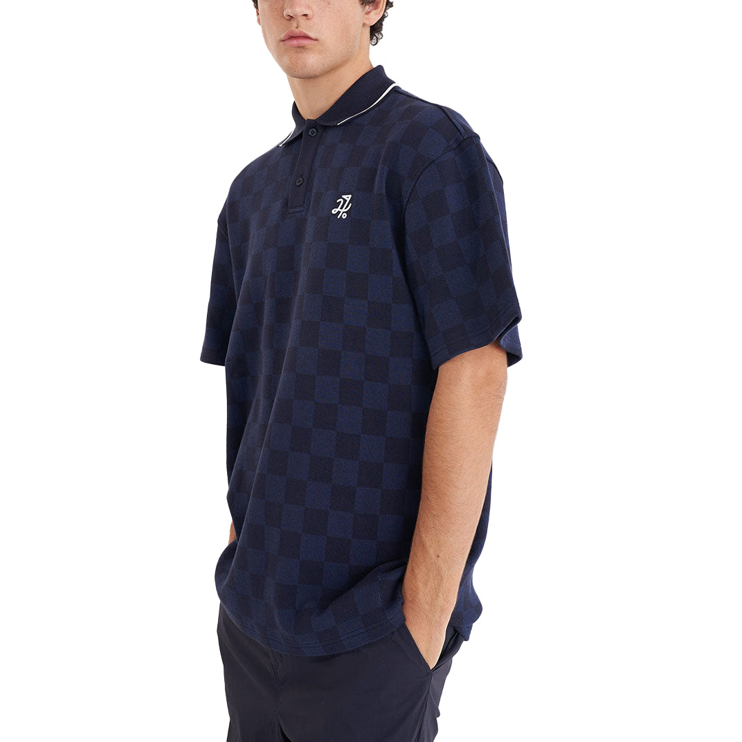 Heres what you should know: Performance Check SS Polo 72% Cotton 28% Polyester / Midweight Custom Huffer check knit / Slightly boxy streetwear fit