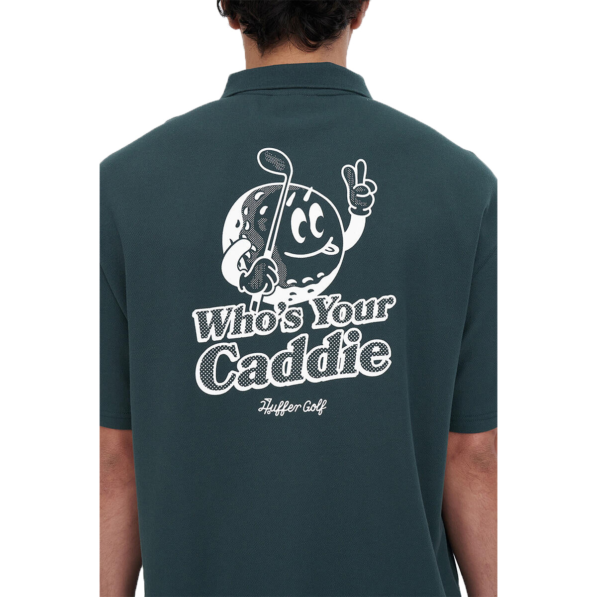 Here’s what you should know: 245gsm 60% Cotton 40% Polyester Pique, a Boxy streetwear fit with WHO'S YOUR CADDIE screenprint on the back - brining the signature Huffer energy to the course.