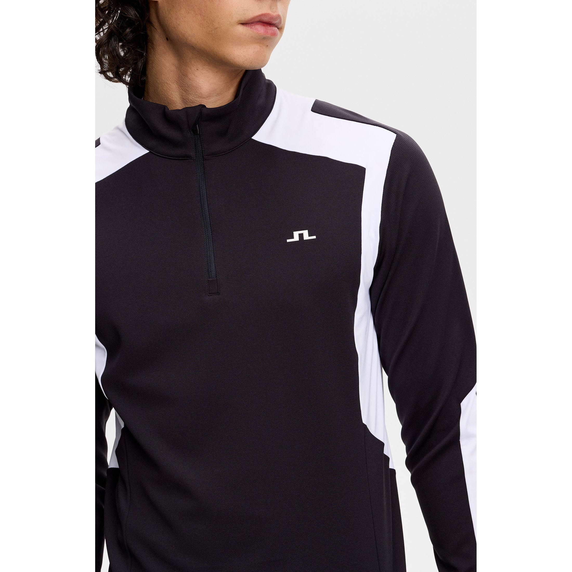Signature Branding: Bridge logo on the chest for subtle J.LINDEBERG identity.