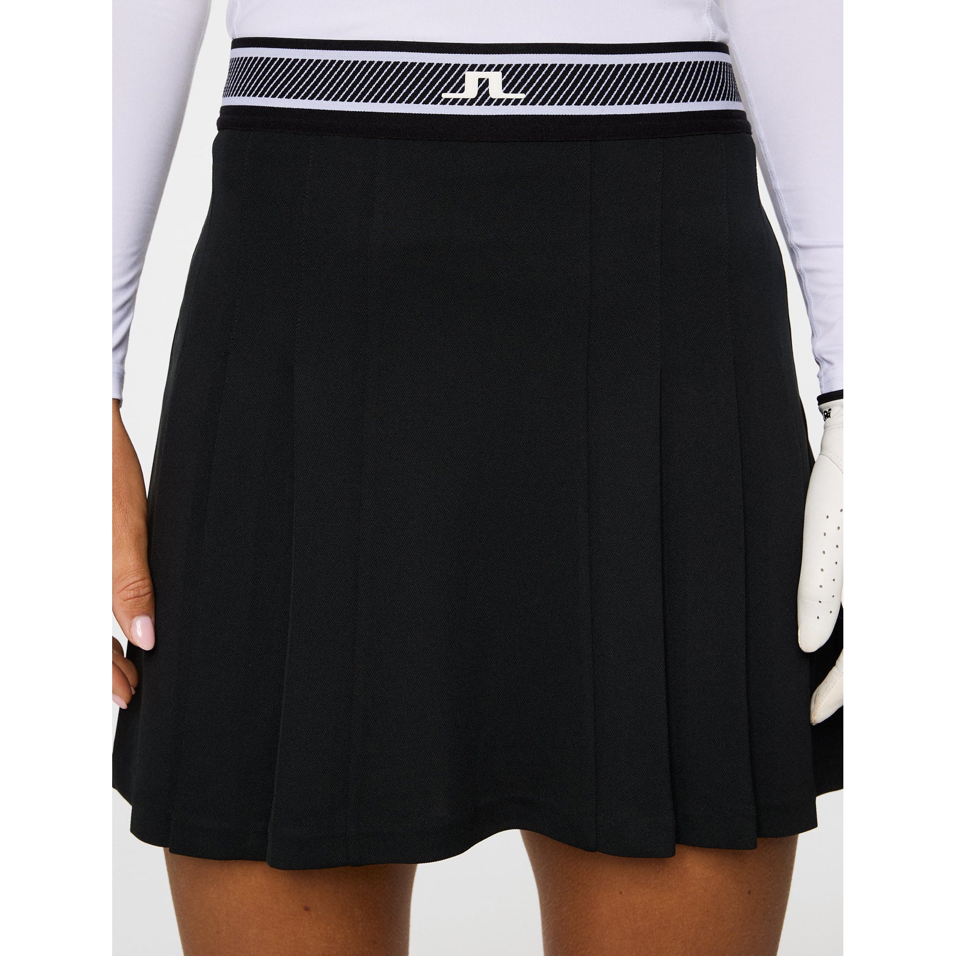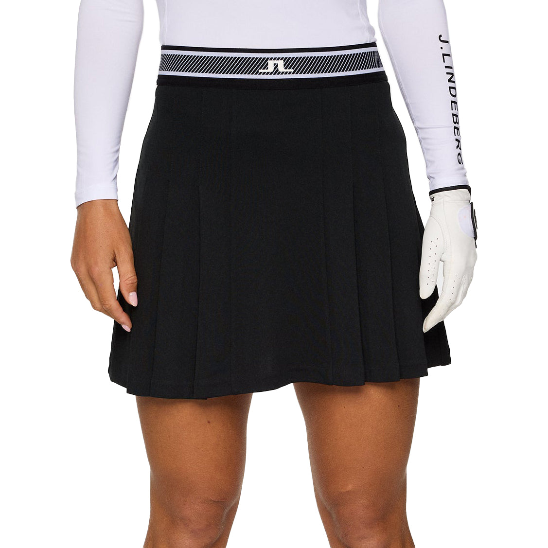 Timeless style meets modern performance in the J.Lindeberg Women's Harlow Skirt. Designed with stitched-down pleats and a bold branded waistband, this skirt offers a crisp, structured look made for movement. Crafted from a breathable pique fabric with moisture-wicking and fast-drying properties, it keeps you feeling cool and polished through every round. Built-in shorts and a back pocket add all-day functionality to this course-ready staple.