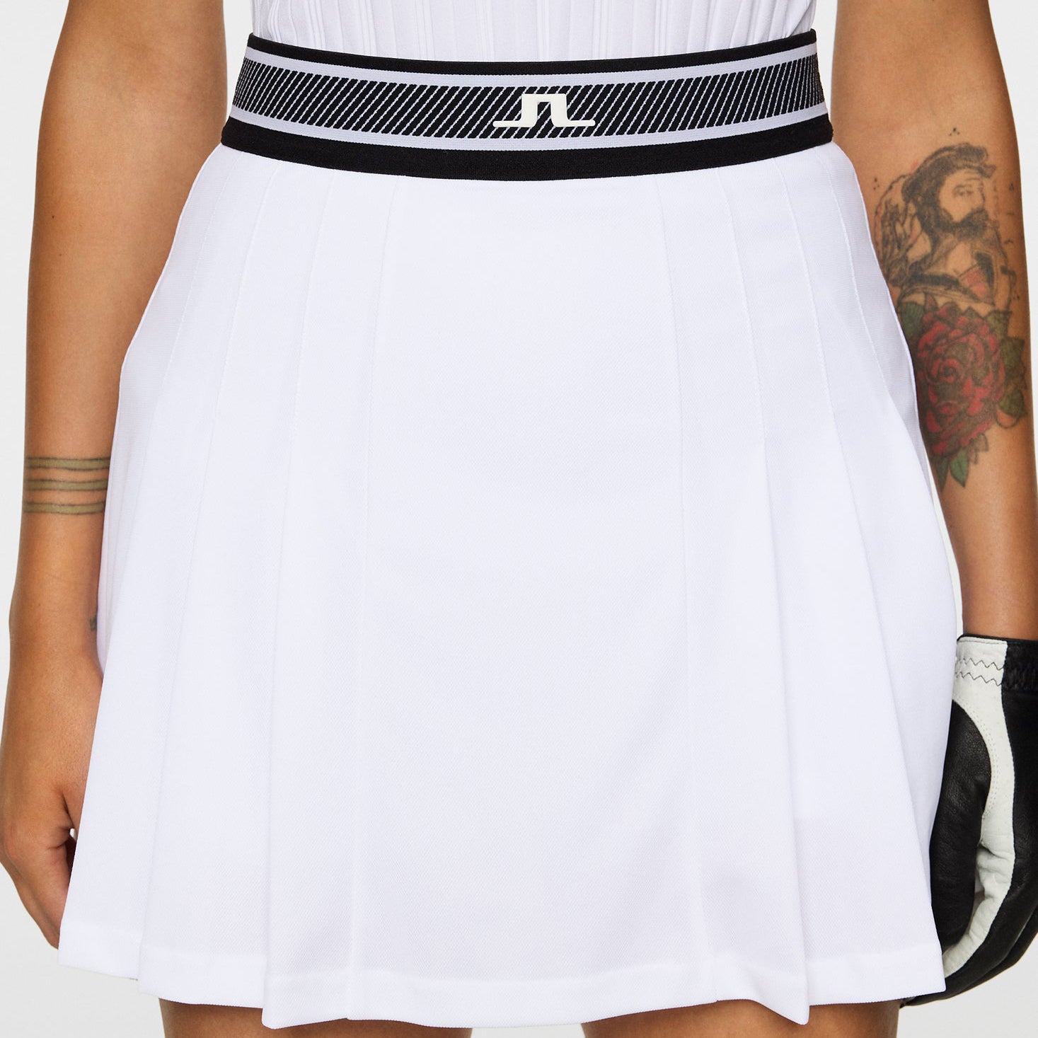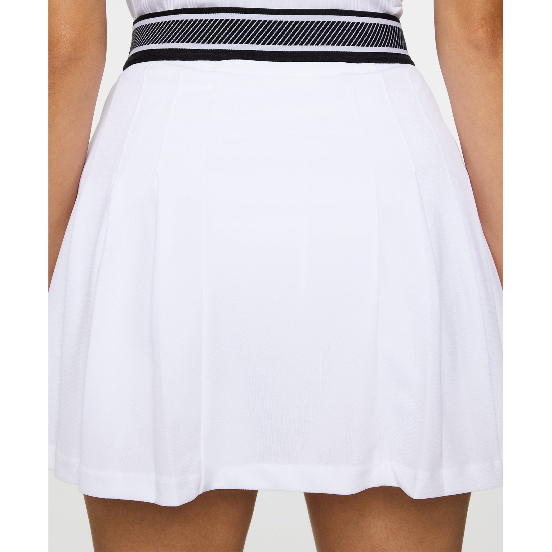 Timeless style meets modern performance in the J.Lindeberg Women's Harlow Skirt. Designed with stitched-down pleats and a bold branded waistband, this skirt offers a crisp, structured look made for movement. Crafted from a breathable pique fabric with moisture-wicking and fast-drying properties, it keeps you feeling cool and polished through every round. Built-in shorts and a back pocket add all-day functionality to this course-ready staple.