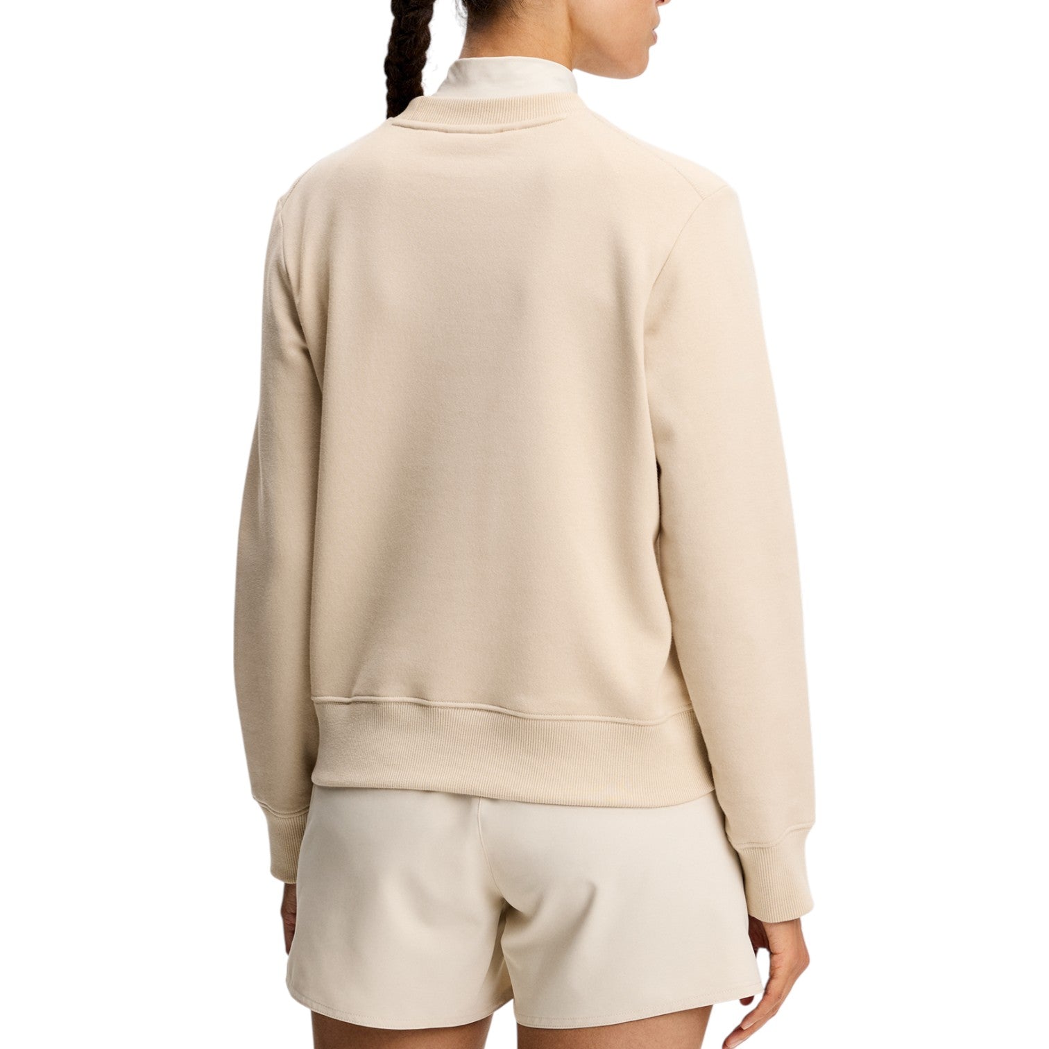 Ribbed Trims: 2x2 rib at bottom hem and sleeve-ends, with a wide rib collar for durability and structure.