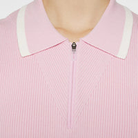 Elevate your golf wardrobe with the J.Lindeberg Women's Ramona Sleeveless Knitted Golf Polo Shirt. Designed with a chunky ribbed structure, this polo combines style and performance, featuring a quarter zip with contrast detailing for a modern, sporty look. The lightweight, soft, and stretchy fabric ensures ultimate comfort and flexibility, while the signature Bridge embroidery at the back adds a refined touch to this versatile piece.