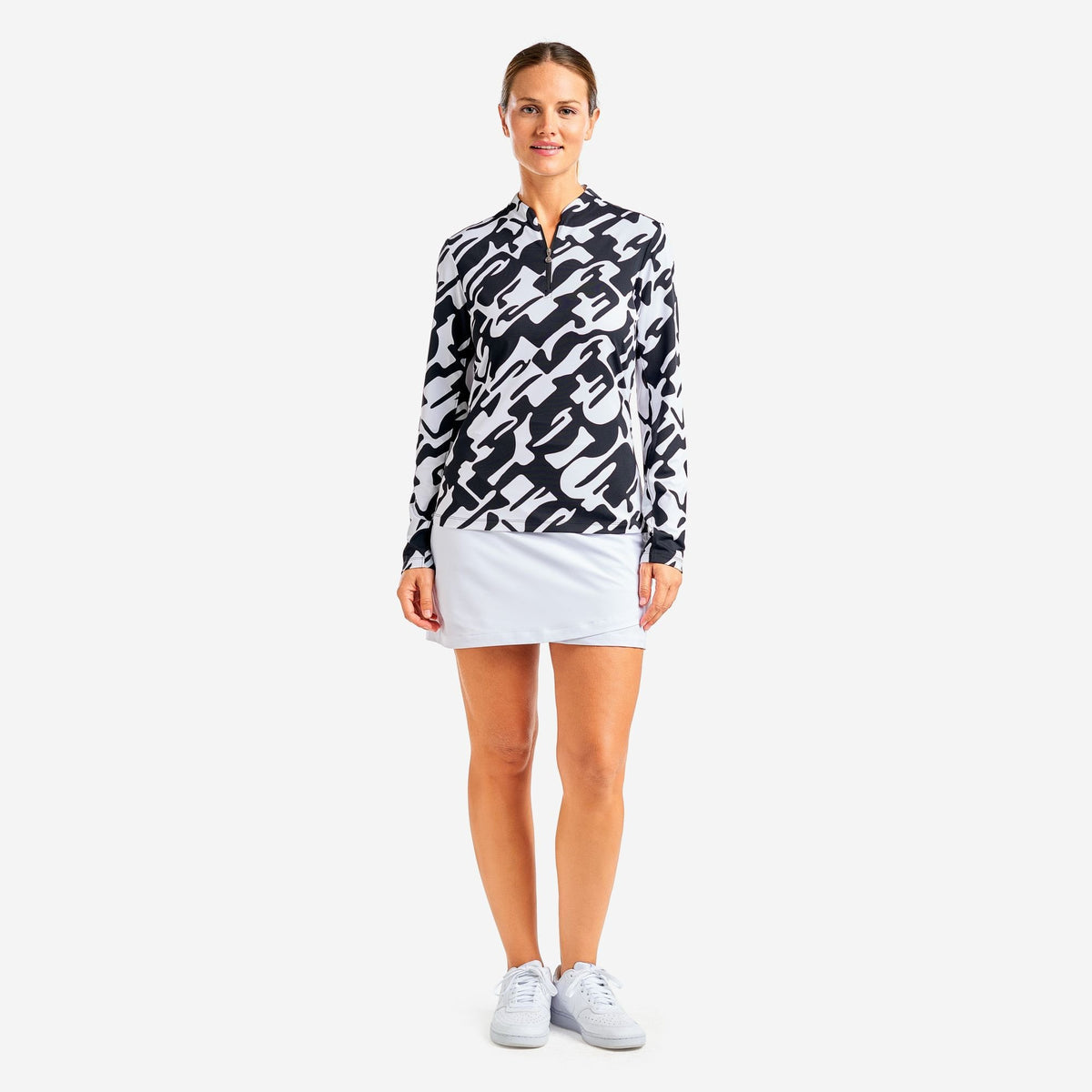 Nivo Women's Lolita UV Long Sleeve Mock Neck Golf Shirt - Black/White