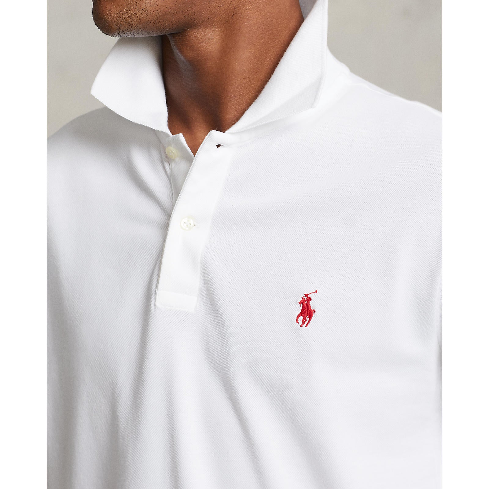 Polo Performance Ralph Lauren Cotton Pique Long Sleeve Polo - Ceramic White/Red