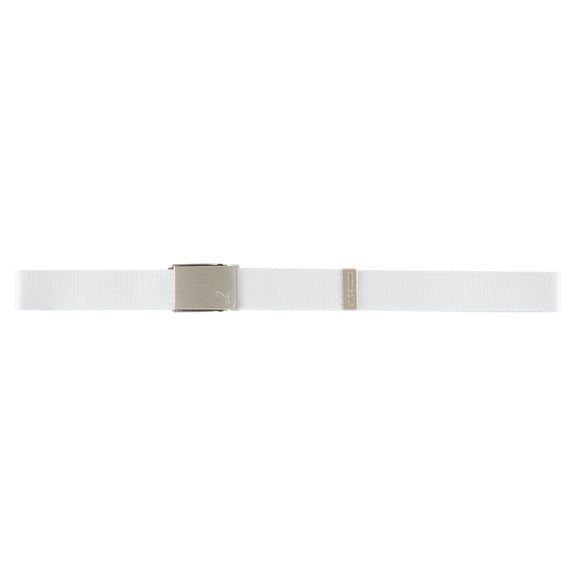 Metal clamp buckle Reversible web strap Bottle opener on back of buckle Debossed Cat logo Debossed PUMA GOLF logo on metal tipped end