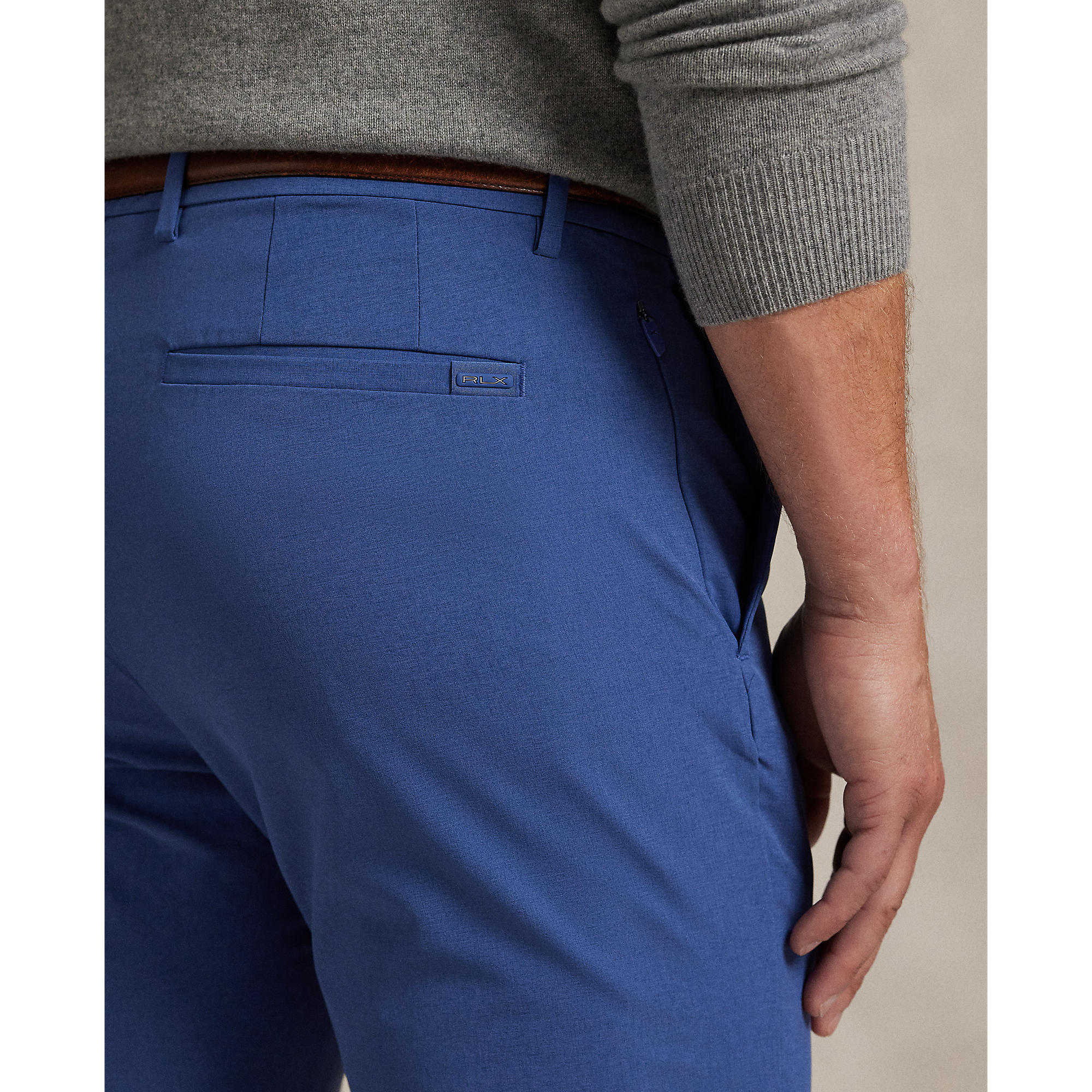 Functional Waist Design: Belt loops with zip fly and extended hook-and-bar closure; rubberised “RLX” detail at the waist tab adds subtle branding.