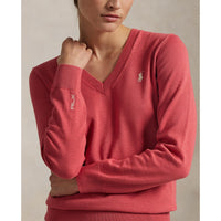 RLX Ralph Lauren Women's Cotton Blend V-Neck Golf Jumper - Red Sky