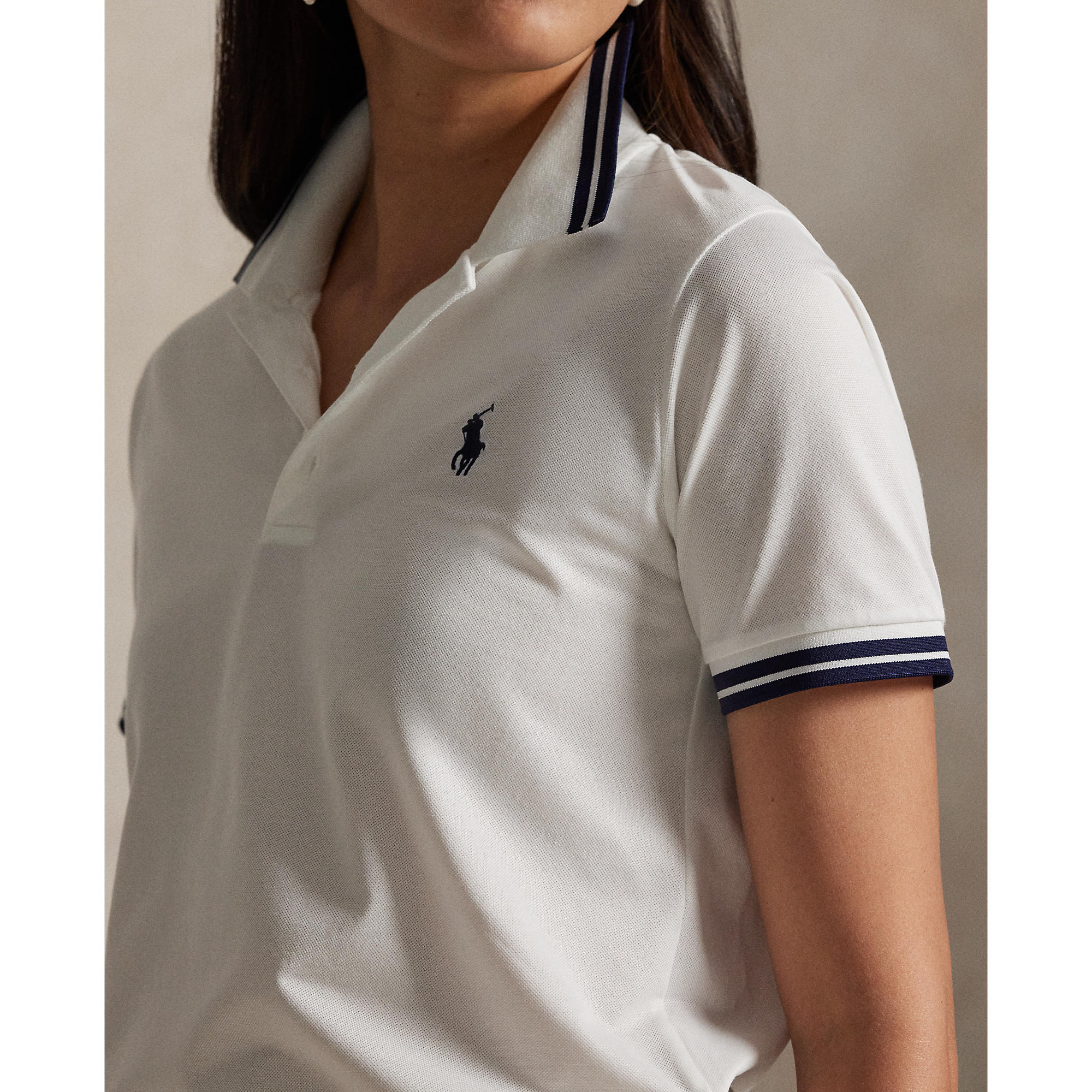 RLX Ralph Lauren Women's Tour Pique Golf Shirt - Ceramic White/Refined Navy