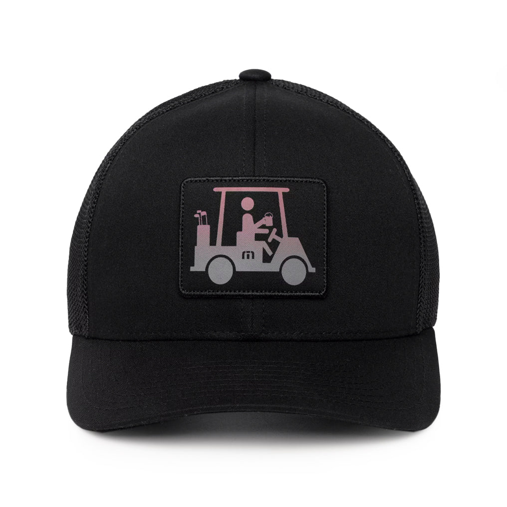 -Fabric snapback hat -Signature “Mapes” golf cart icon patch with logo in an ombre style