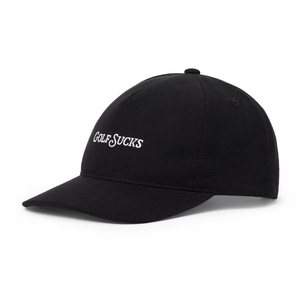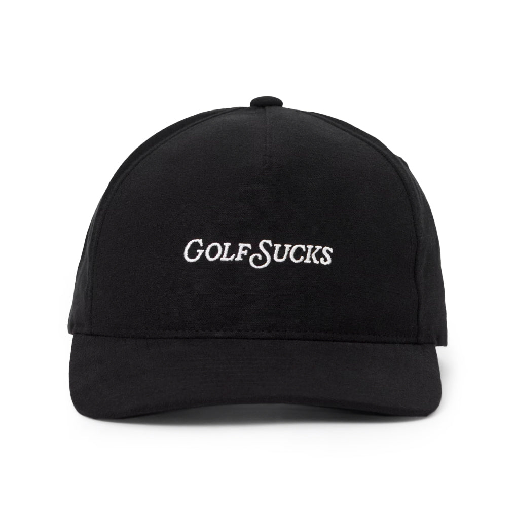 Bold, Cheeky, and Unapologetically Fun Who needs a filter? The GOLF SUCKS Hat makes a statement with bold front embroidery and a rebellious skeleton graphic on the back. Designed with unstructured construction and Flexfit 110® technology, it’s as comfortable as it is daring—perfect for players who can laugh off a rough round.