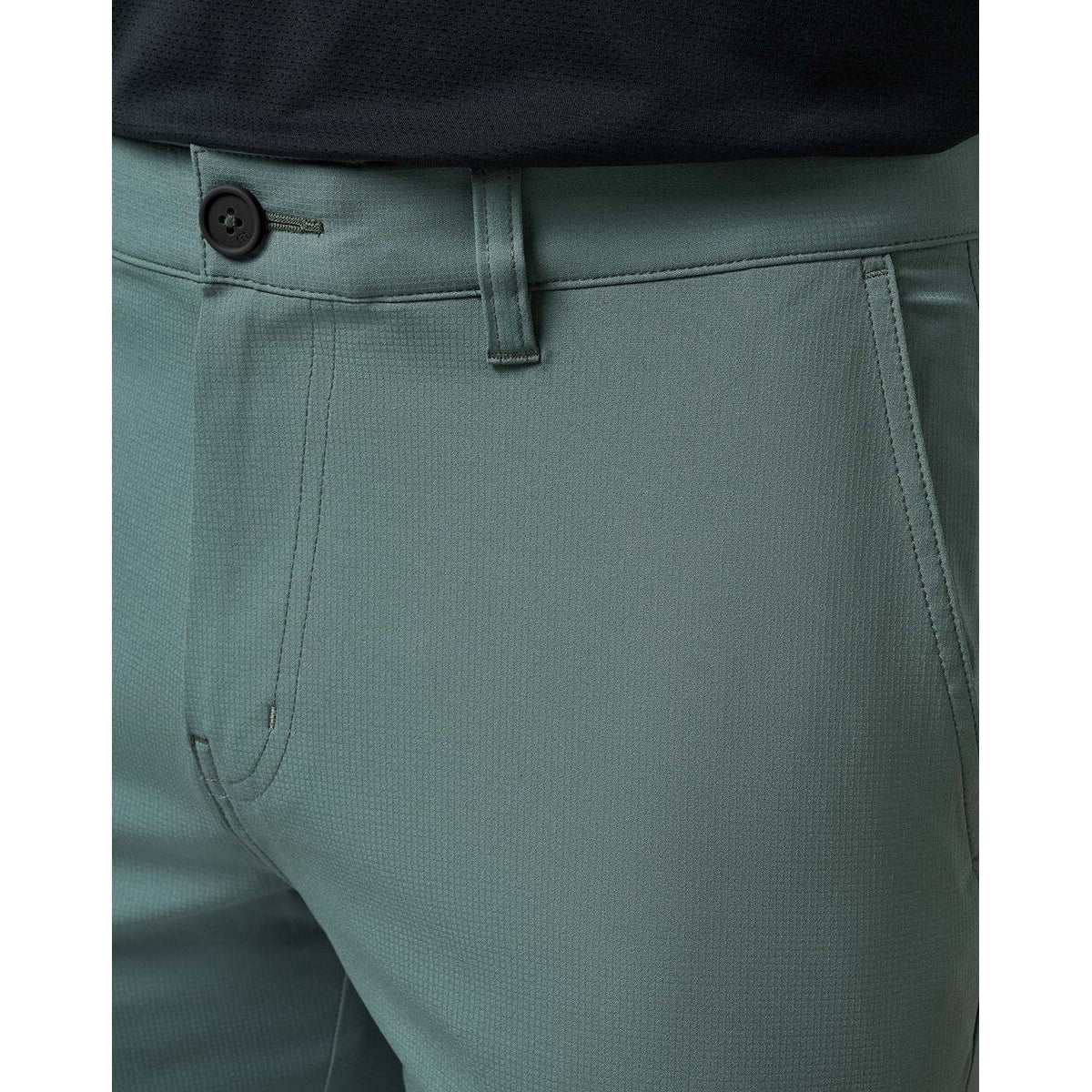 Functional Design: Silicone-grip interior waistband with belt loops; invisible zipper pocket on right side seam; double welt back pockets