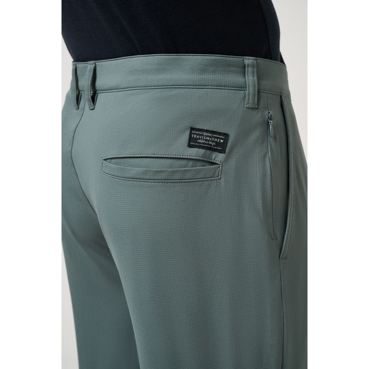 Signature Branding: Woven TravisMathew label above back right pocket