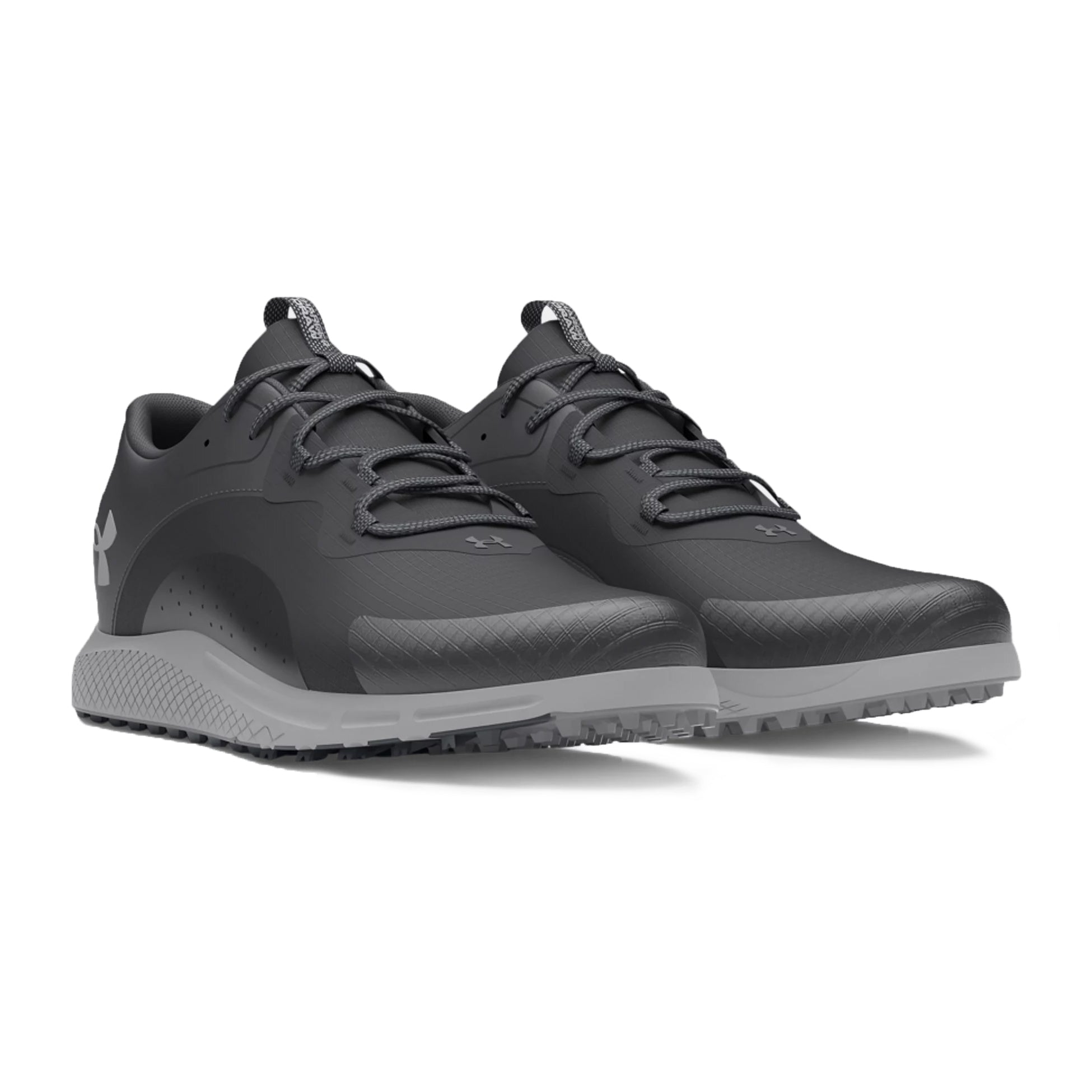 The spikeless shoes that keep your feet comfortable to keep you focused. The ripstop upper is light but durable, the Charged Cushioning® absorbs impact, and the Never-Wet treatment keeps you dry.