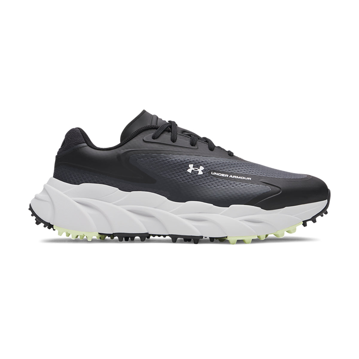 A waterproof textile upper with suede detailing provides versatile styling alongside breathable protection, while strategic overlays enhance durability and lockdown support. Finished with a UA Rotational Resistance outsole, this spikeless design offers directional traction to keep you grounded during your swing without sacrificing off-course versatility.