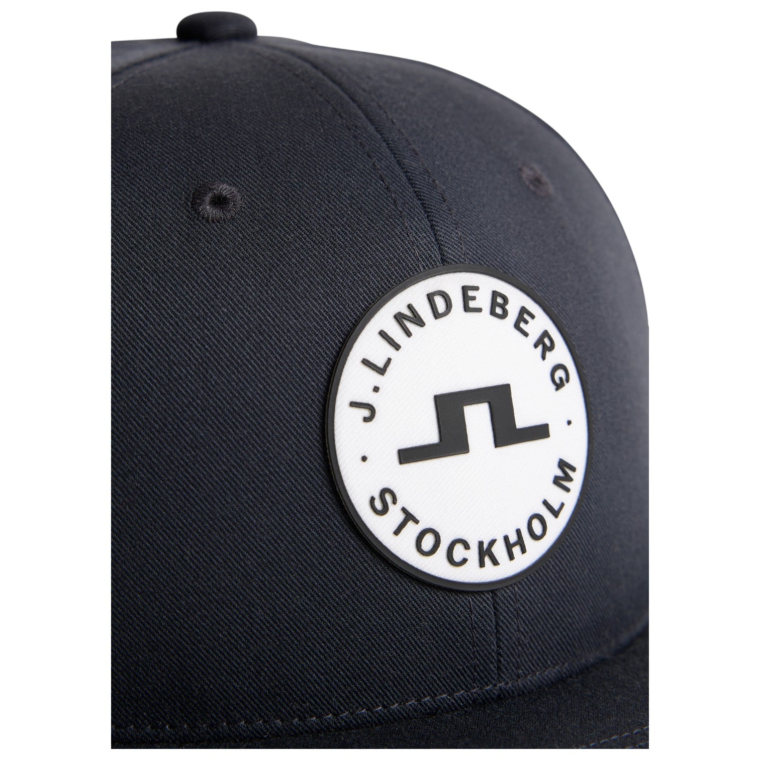 • 标志性正面品牌:桥标志和 J.LINDEBERG 文字标志,正面中央带有斯德哥尔摩贴片。