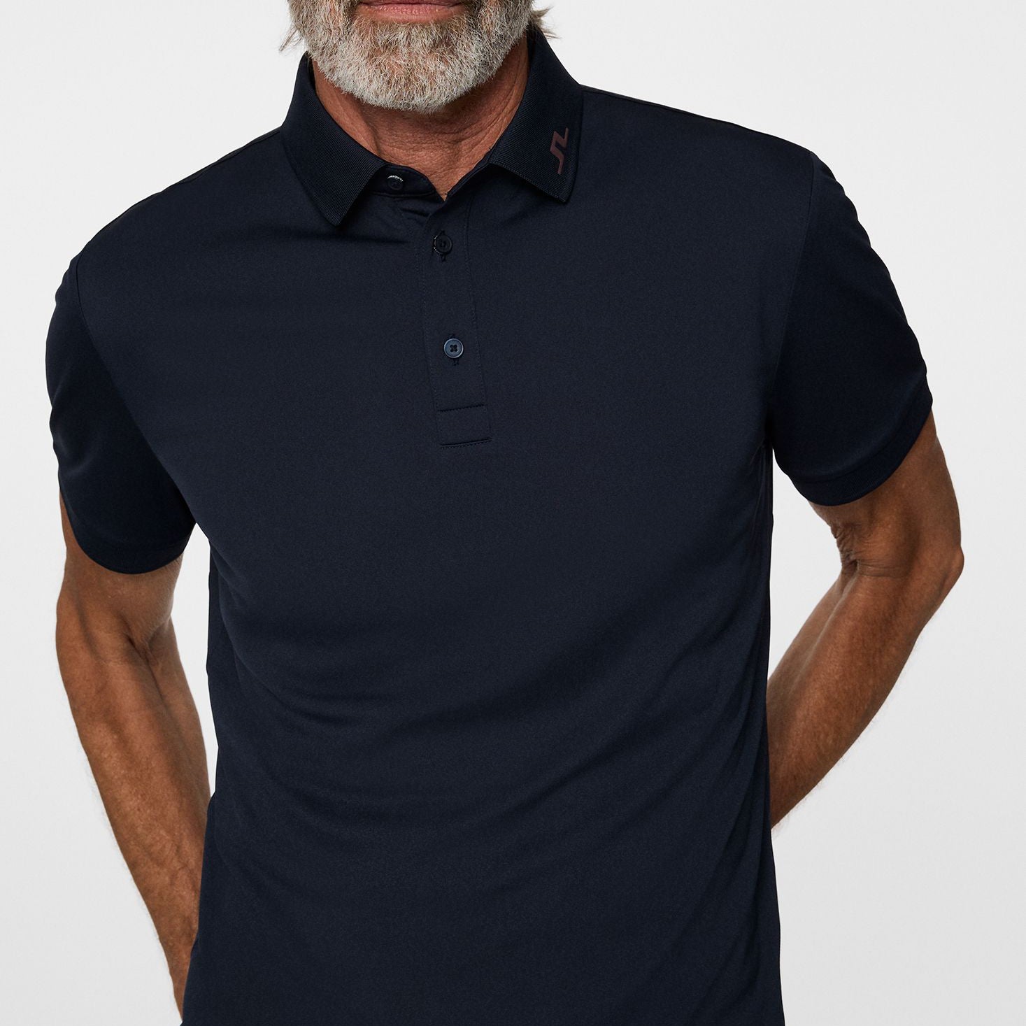 签名品牌:项圈上的绣花桥徽标增加了精致且可识别的J.Lindeberg Touch。