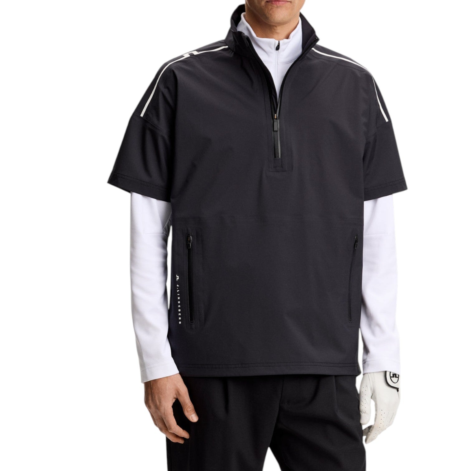 J.LINDEBERG Shay 雨衣将鲜明的现代设计与功能性的防风雨保护融为一体。它采用轻质、可拉伸、防水的面料制成,在潮湿条件下提供透气覆盖和舒适感。它采用挺括的衣领、流线型剪裁和精致的品牌标识,是一款百搭单品,适合球场比赛或精致休闲服装。