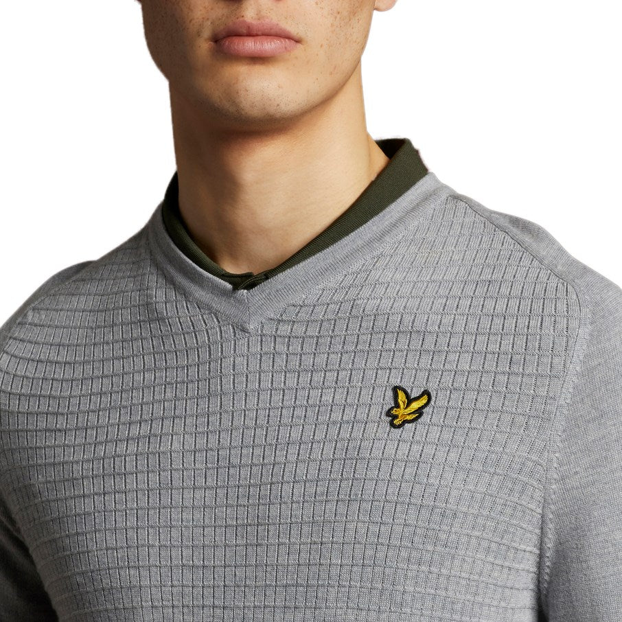 Lyle&Scott Merino网格纹理v Neck jumper-卵石