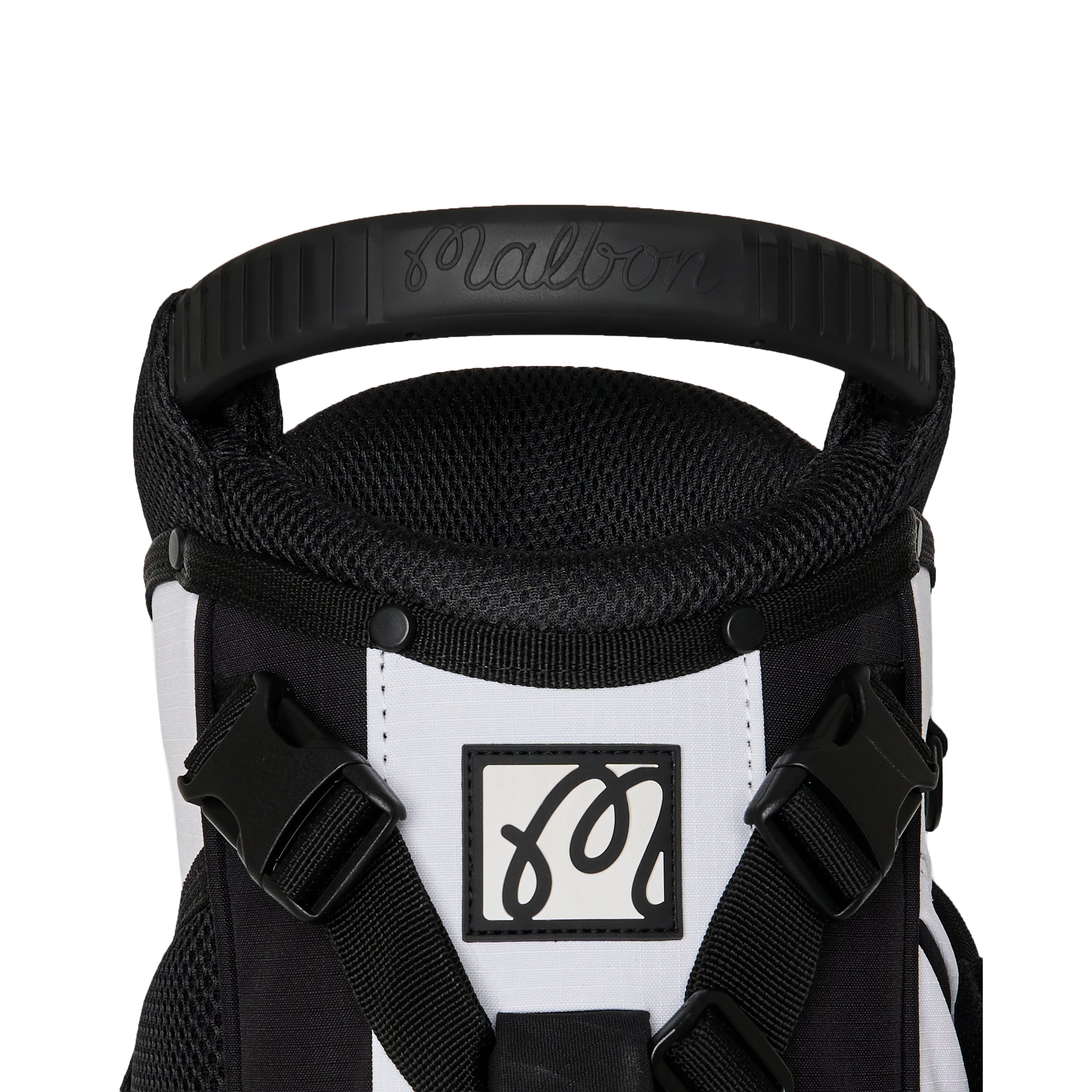 这款行走包采用耐用的尼龙防撕裂面料制成,展示了 Malbon 标志性品牌标志,确保它能够应对您在球场上的所有冒险。它具有多个拉链口袋,包括一个方便的网状测距仪口袋和一个位于正面的磁性闭合口袋,可方便快速取放必需品。这款高尔夫球包采用轻质设计(重量低于 6 磅)和带夹子的交叉背带,为全天比赛提供最大的舒适度。