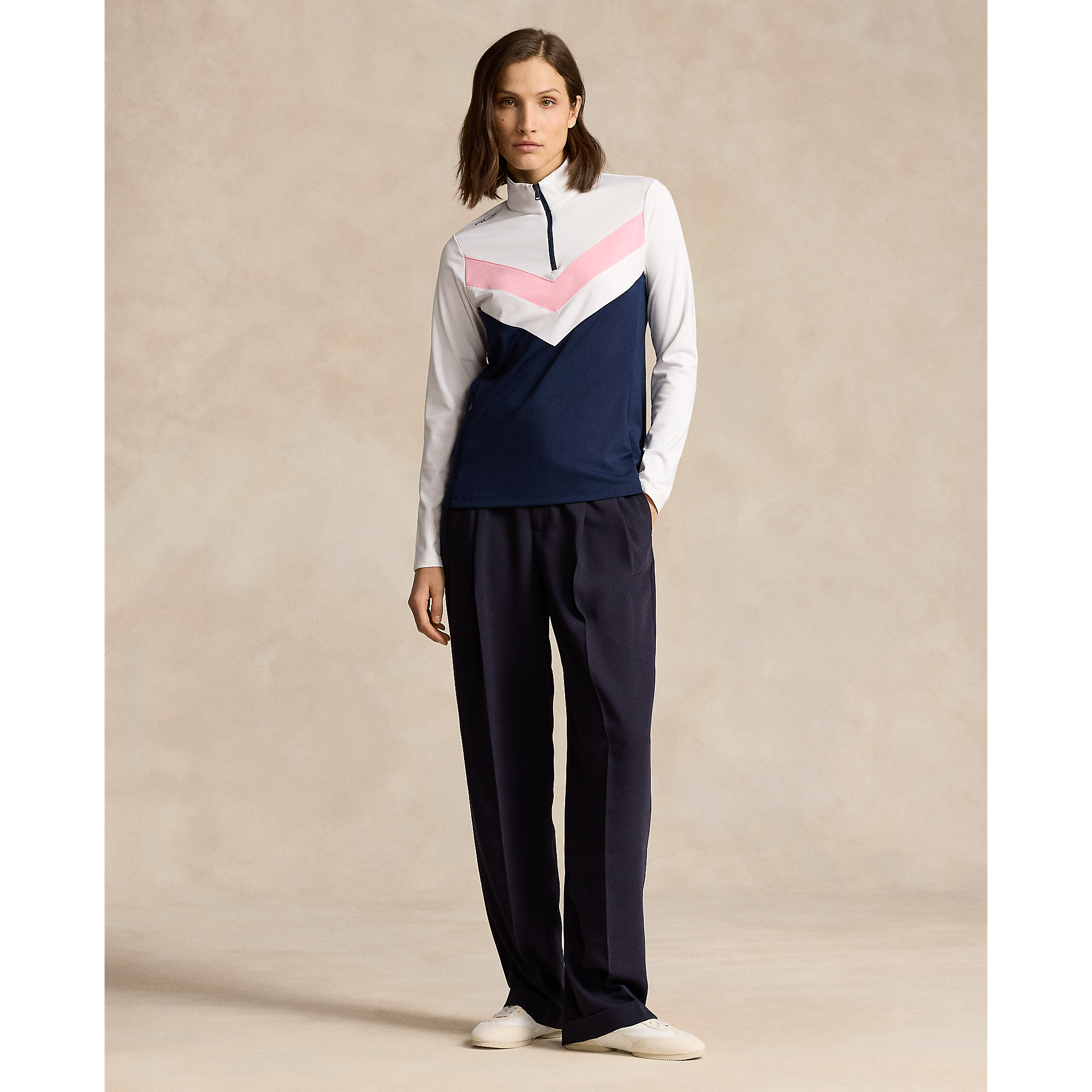 RLX RALPH LAUREN女子力量伸展1/4拉链拉伸 - 法国海军/白色/粉红色