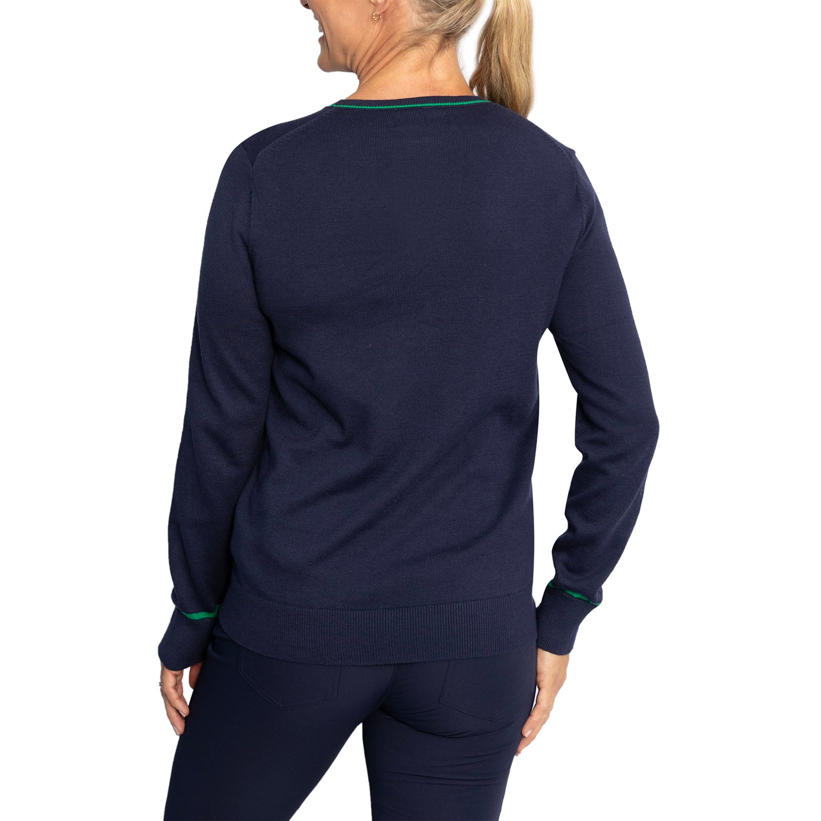 RLX RALPH LAUREN女子棉花混合针织套头衫 - 法国海军/巡航绿色