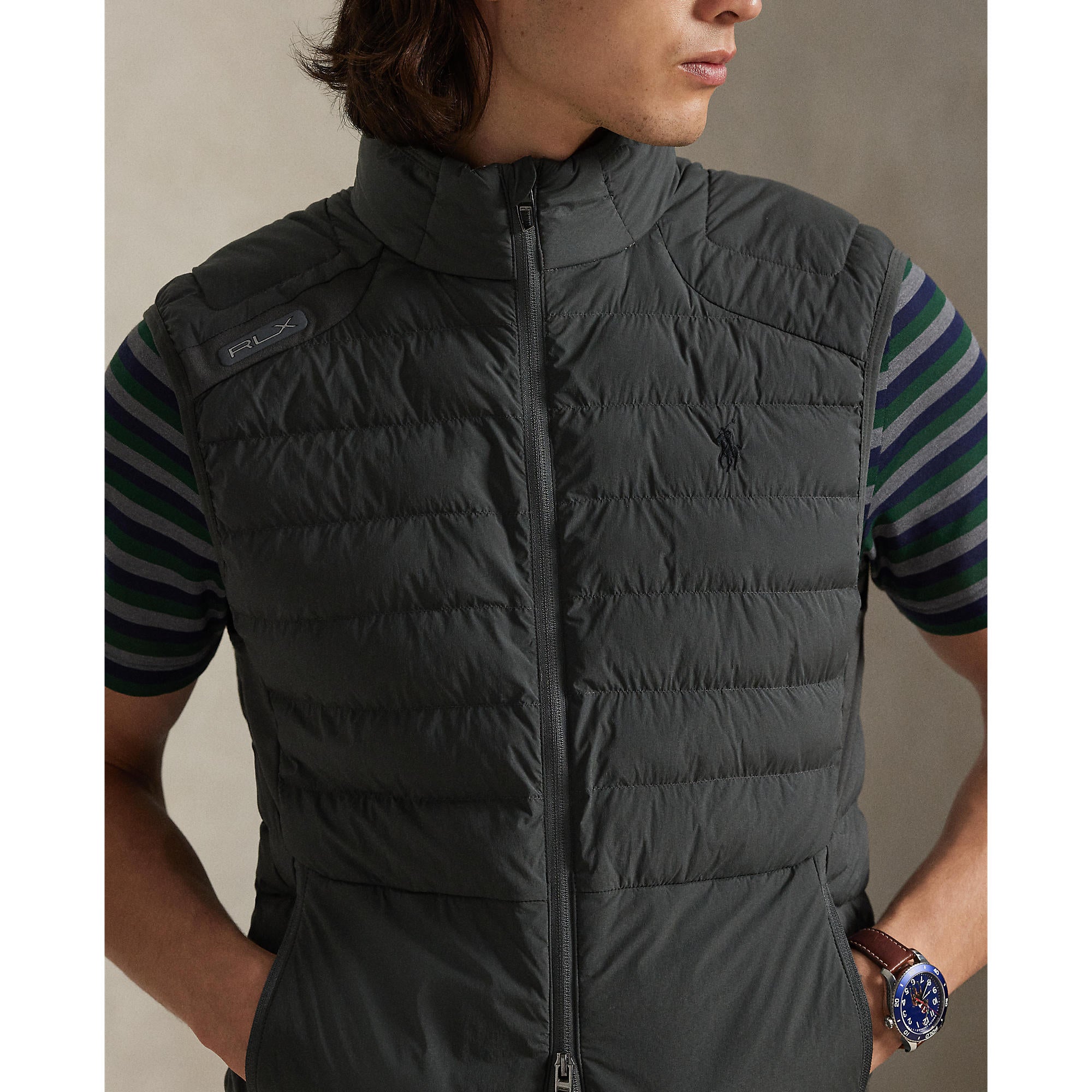 Lightweight, Insulated, and Performance-Driven The RLX Ralph Lauren Men’s Ergonomic Down-Alternative Gilet combines technical performance with modern styling. Crafted from water-repellent fabric and ergonomically panelled with stretch jersey, this gilet provides warmth, mobility, and functional storage for on- and off-course wear.