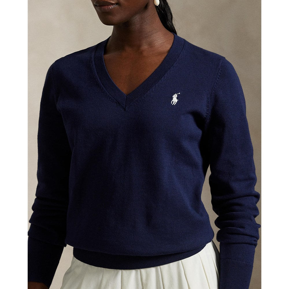 RLX RALPH LAUREN妇女棉花混合V领高尔夫跳投 - 精制海军