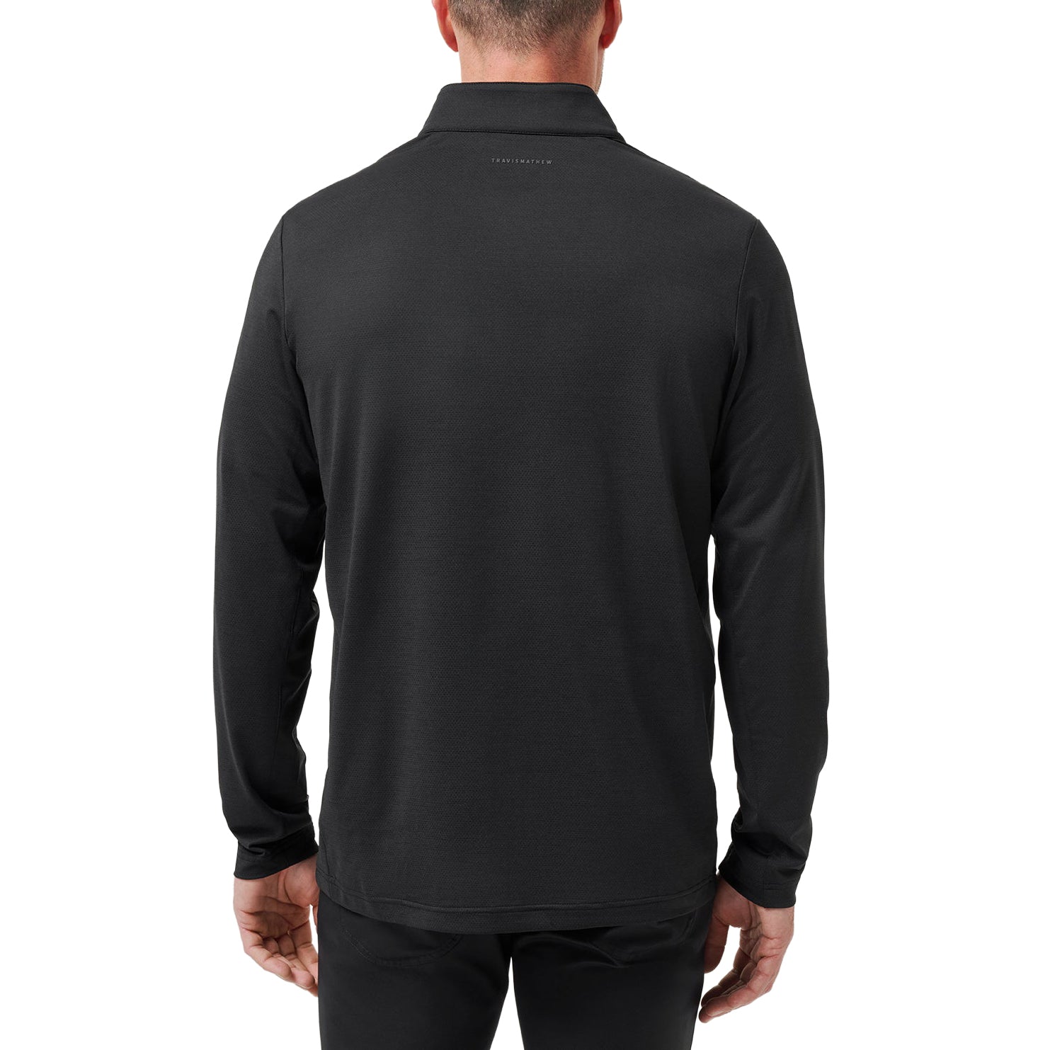 Signature Branding: TravisMathew circle icon on the front chest