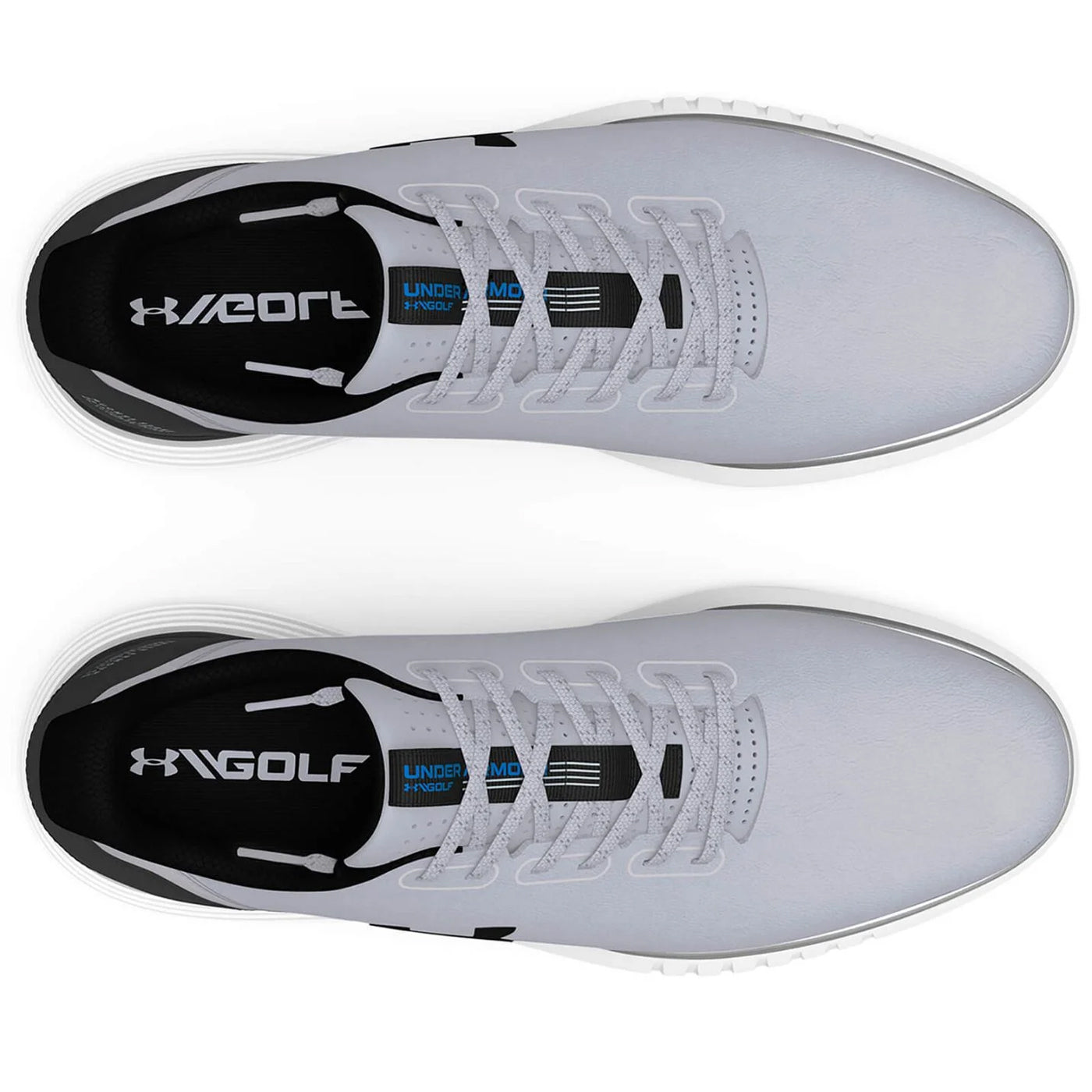 UA带电的奖牌无尖力高尔夫球鞋是由轻巧,透气的超细纤维鞋面制成的,具有防水特性,可帮助保持脚部凉爽干燥。这双鞋具有带旋转阻力的尖刺混合底底,比标准的秘密鞋底更轻,更灵活,但避免牺牲抓地力。