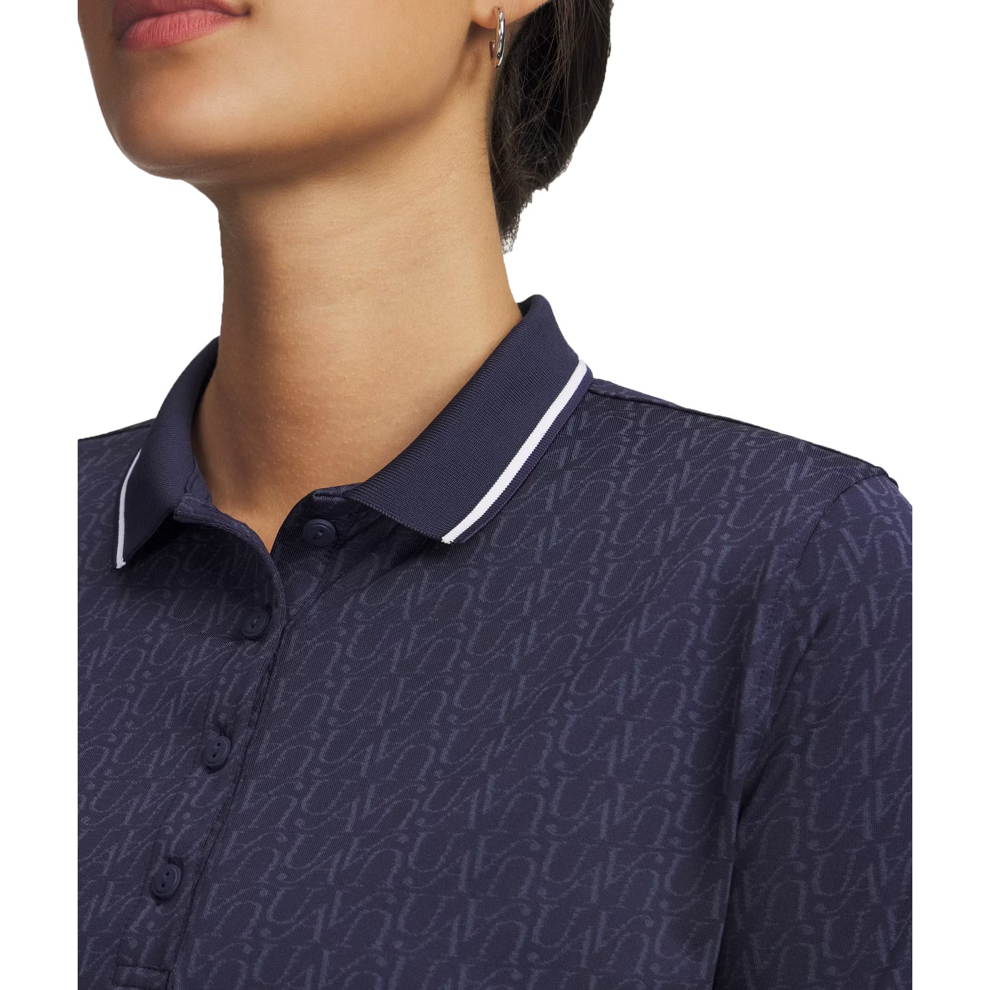 Under Armour 女式 Drive 提花高尔夫 Polo 衫 - 午夜海军蓝/白色